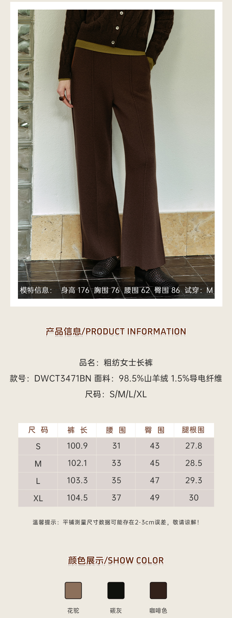 东黎 • 山羊绒女士秋冬青山疏影羊绒阔腿裤 3471