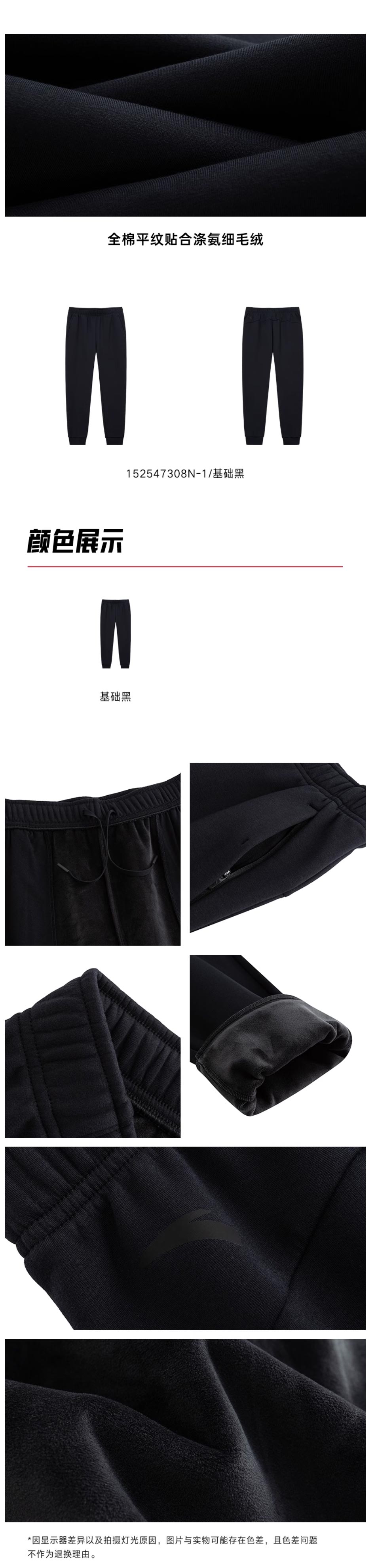 安踏加绒运动长裤男士冬季新款跑步训练针织卫裤休闲裤152547308N-1