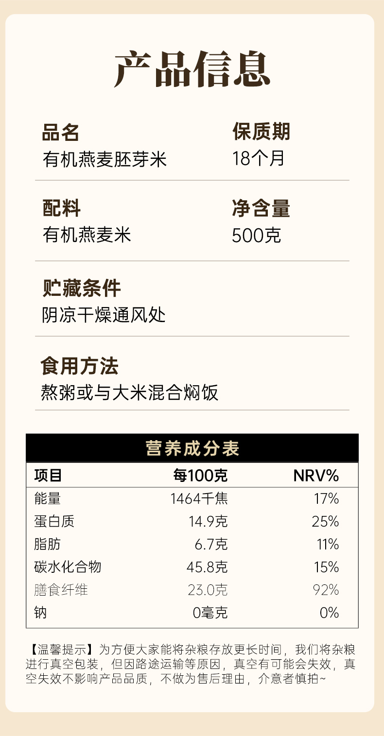 璞匠有机燕麦胚芽米农家新货五谷杂粮粗粮粥脱皮燕麦粒裸去壳新米