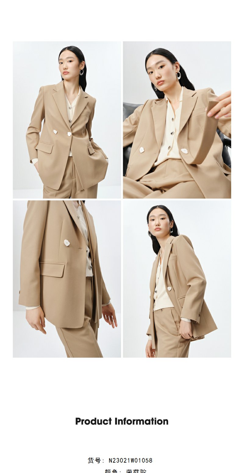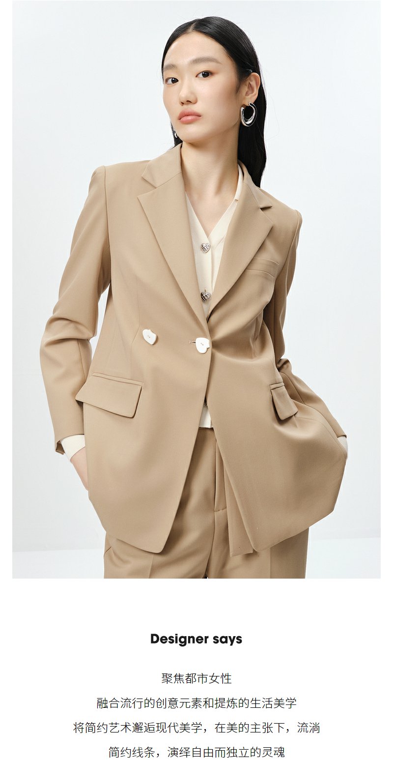 NEELLY纳俪商场同款2023春季新款西装外套女小众爱心扣短外套上衣N23021W01058