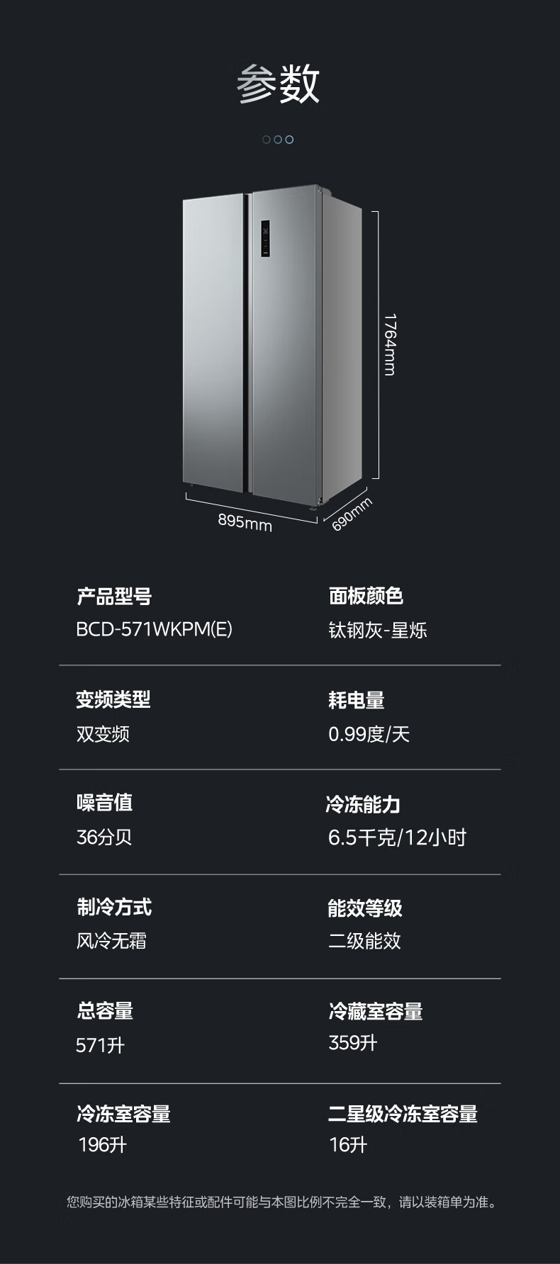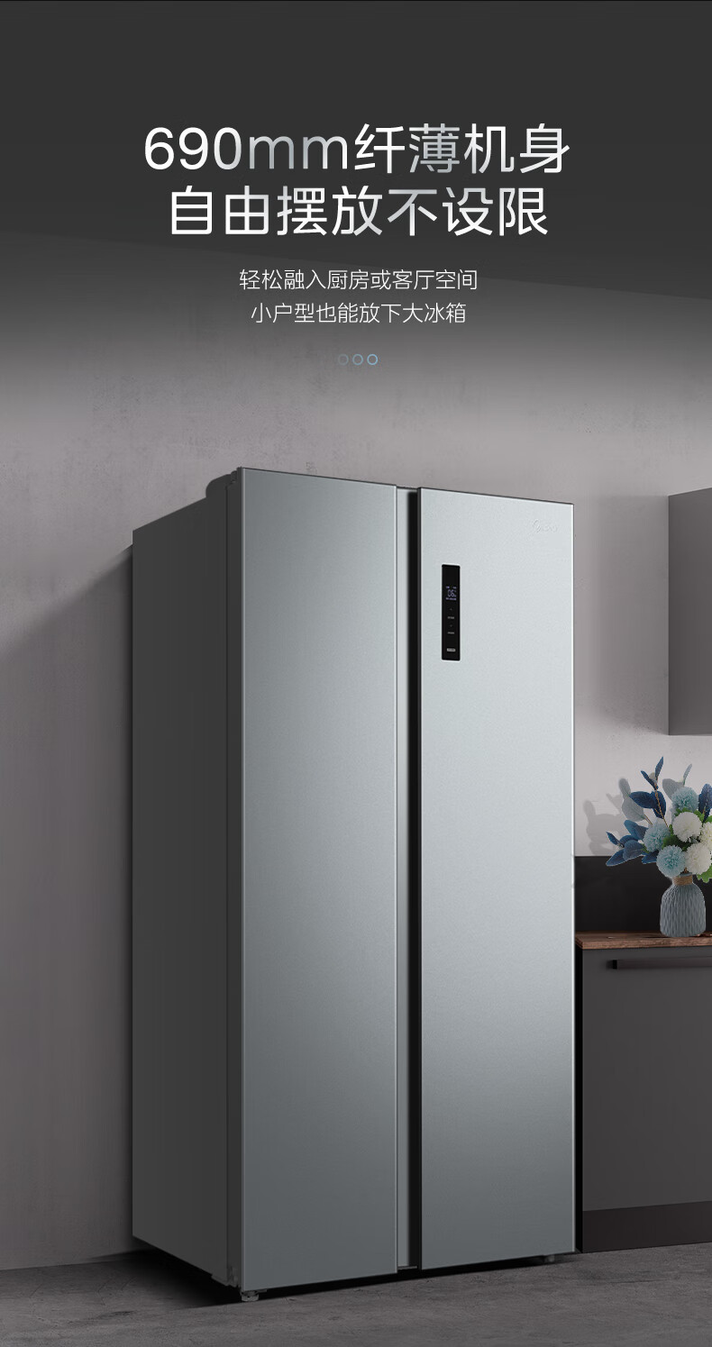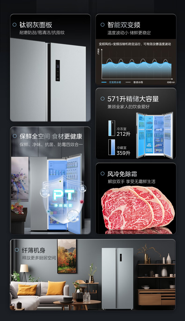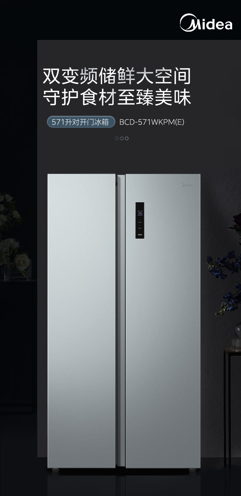 美的(Midea)571升双变频对开双开门家用冰箱智能风冷无霜BCD-571WKPM(E)钛钢灰-星烁