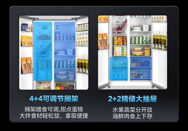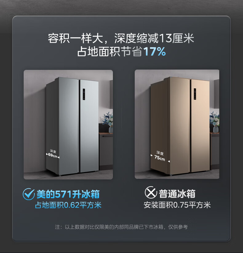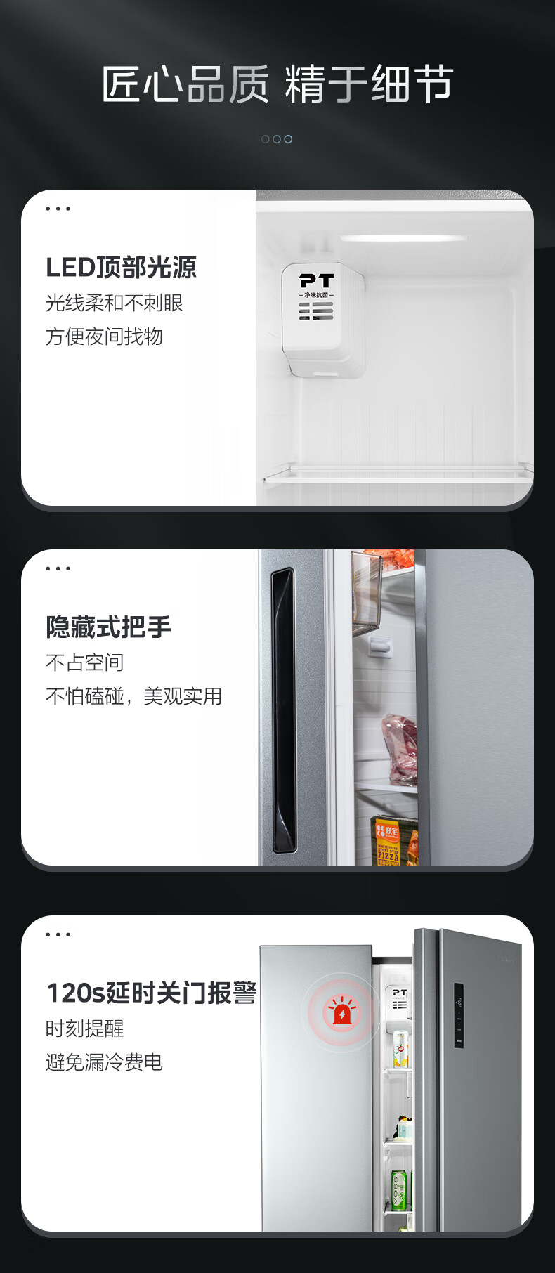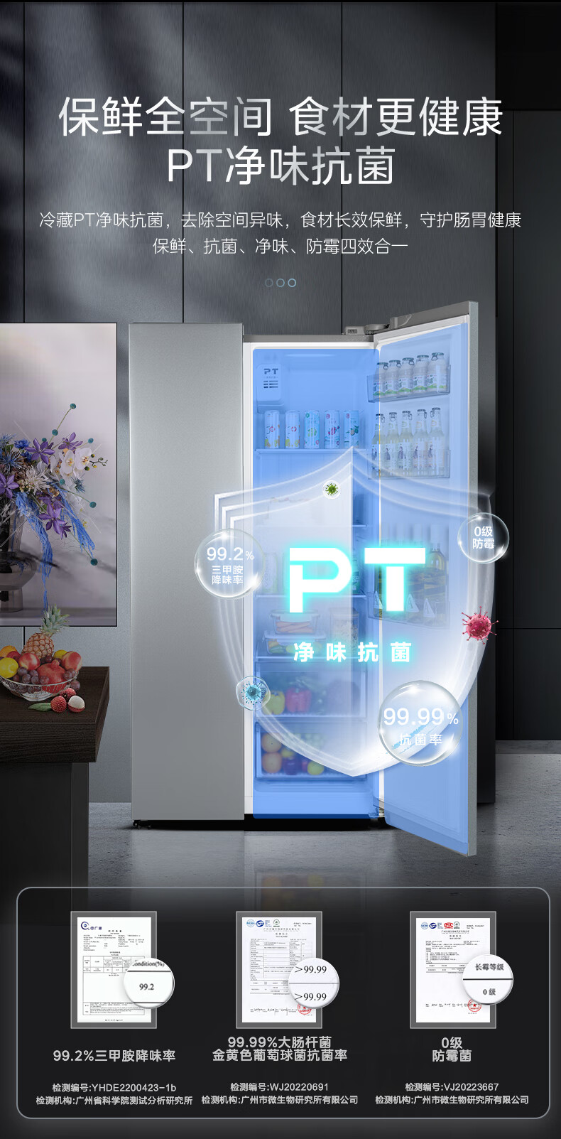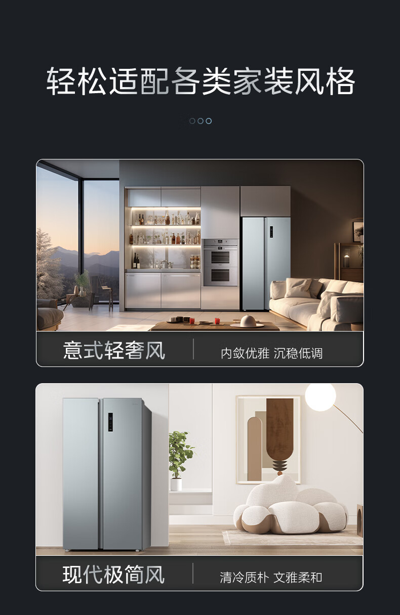 美的(Midea)571升双变频对开双开门家用冰箱智能风冷无霜BCD-571WKPM(E)钛钢灰-星烁