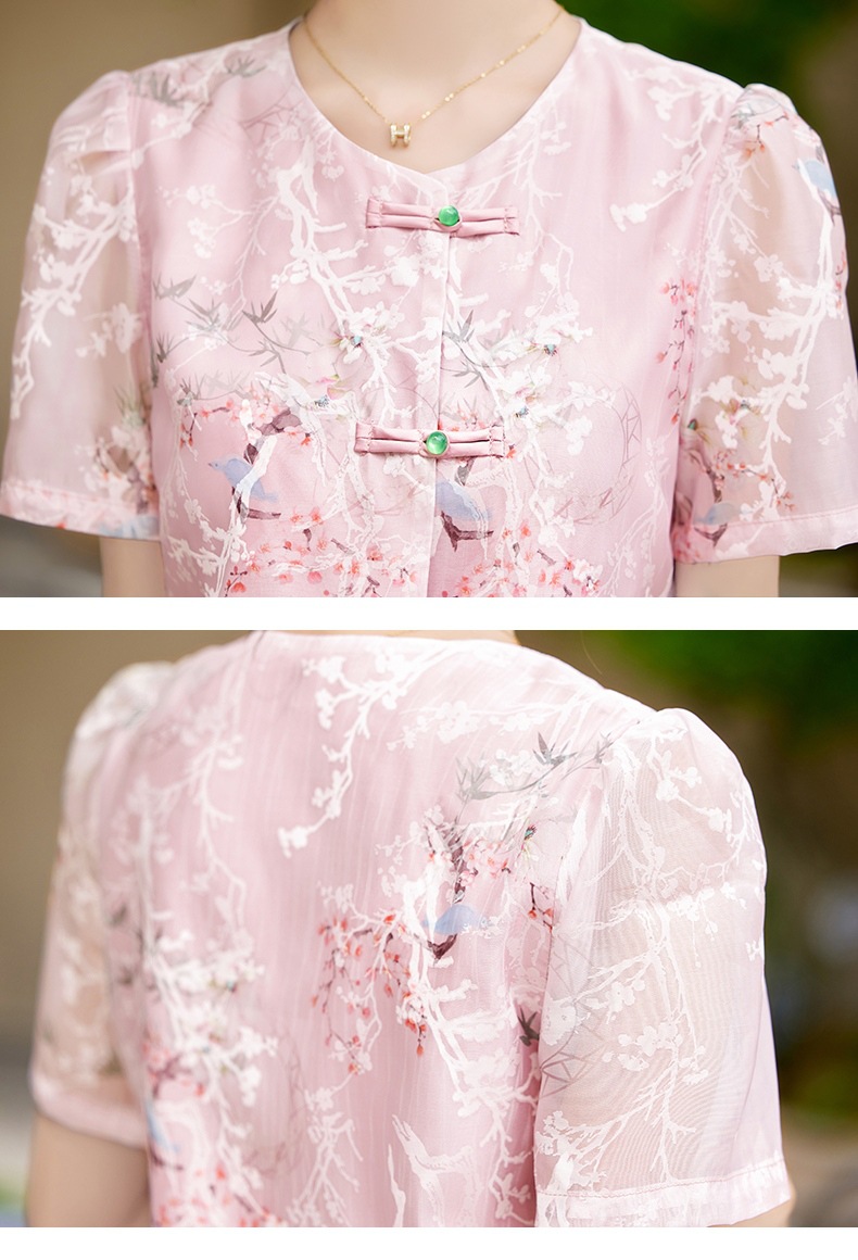中式改良旗袍上衣女春秋中国风复古立领气质盘扣印花刺绣长袖衬衫 YX2051