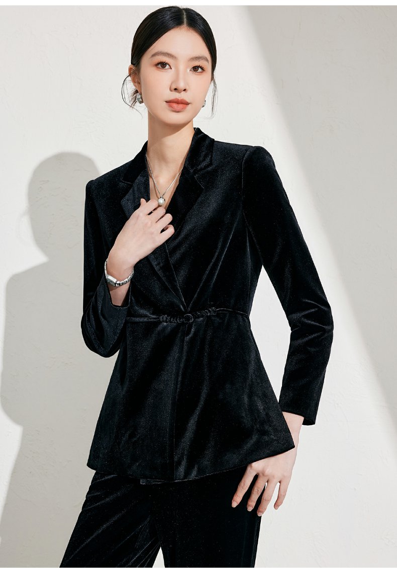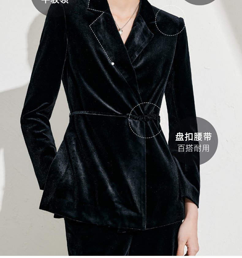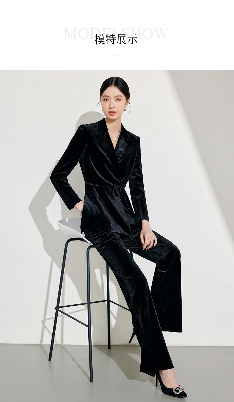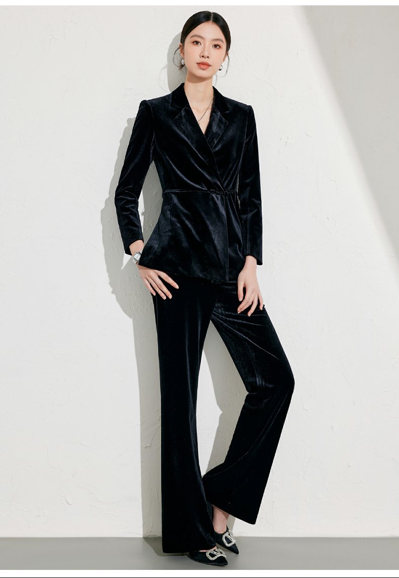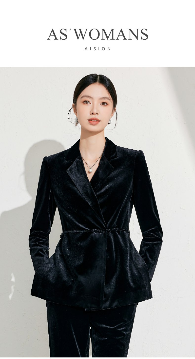 IWY/黑色西装套装女新款秋冬轻奢高级感职业正装小西服丝绒套装24CP642