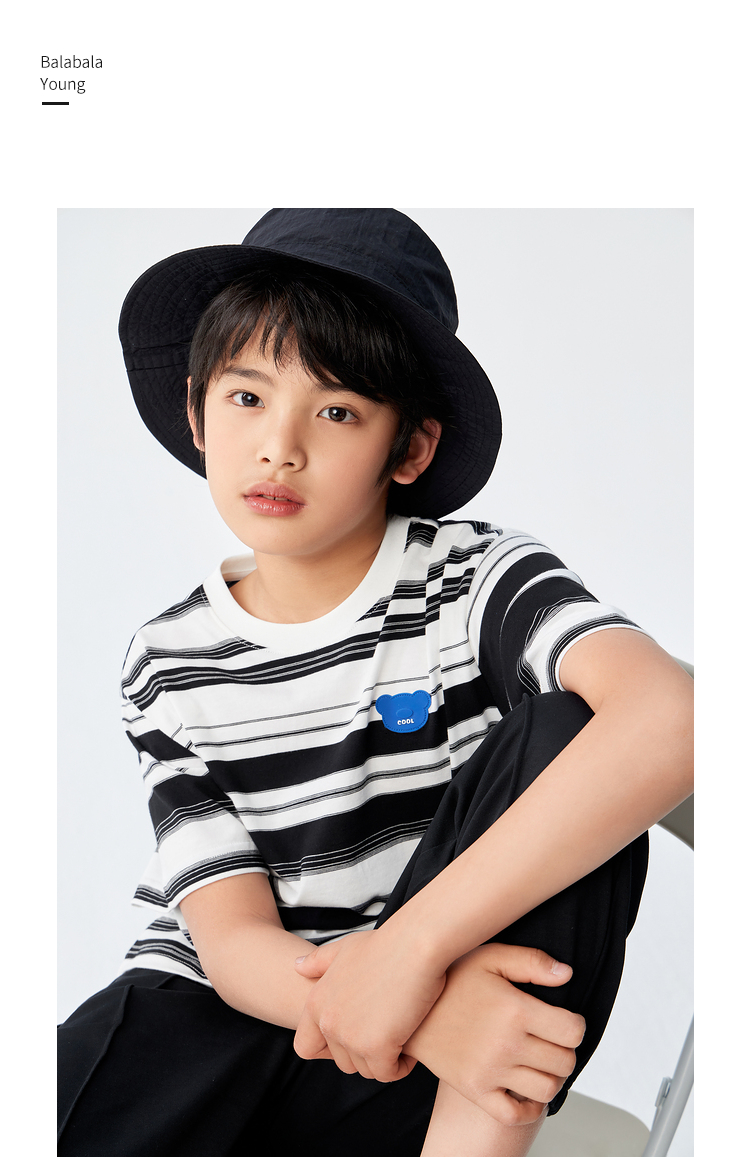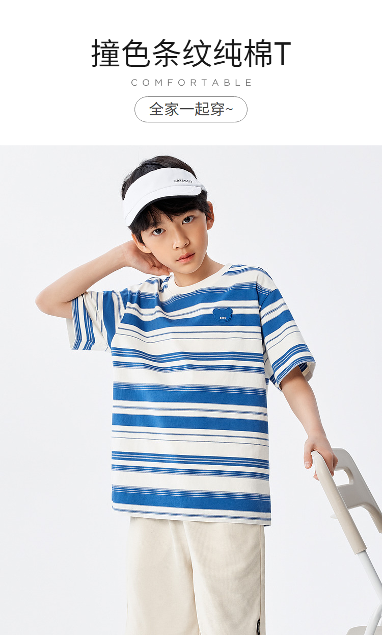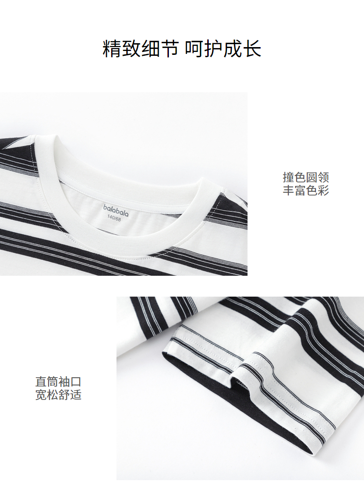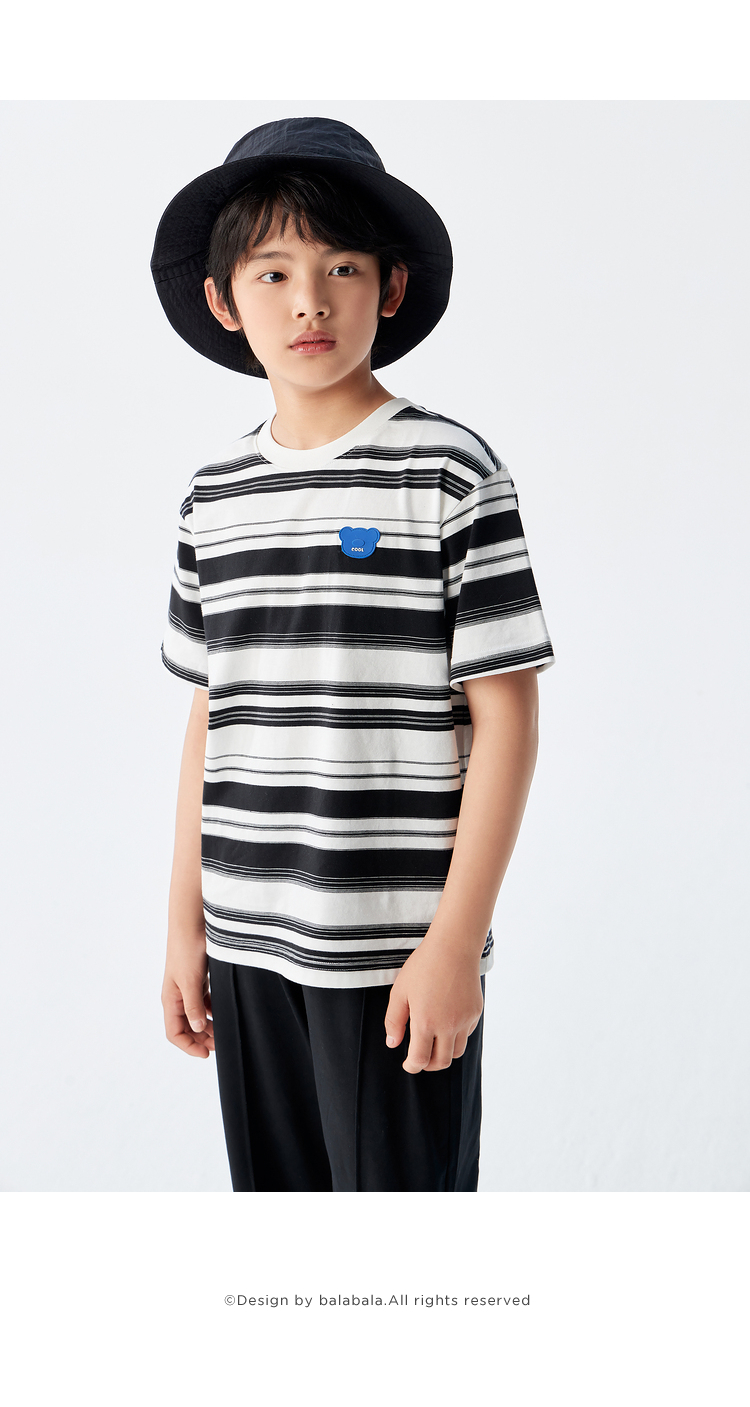 巴拉巴拉童装短袖条纹t恤男童夏季新款亲子纯棉打底上衣女酷