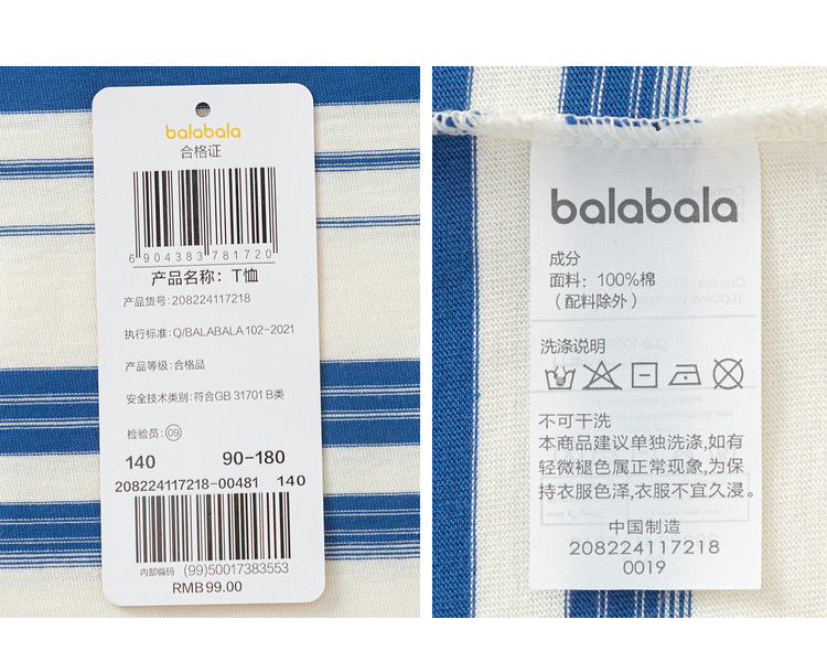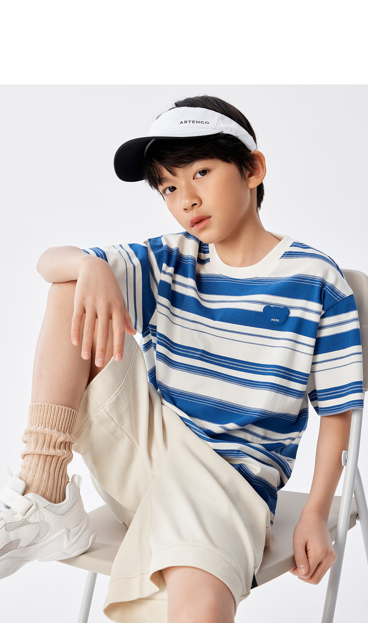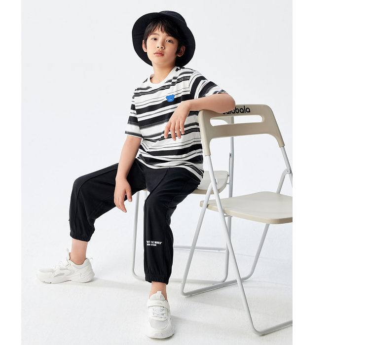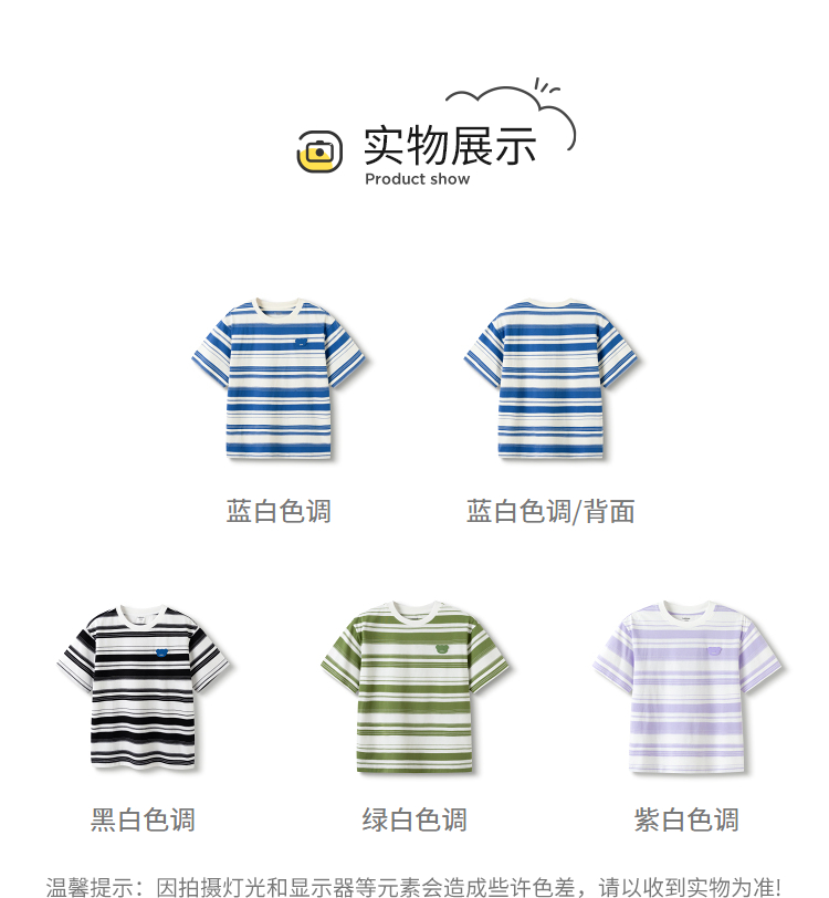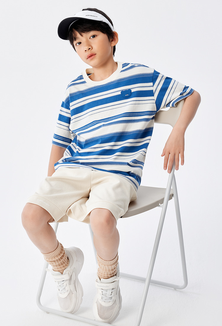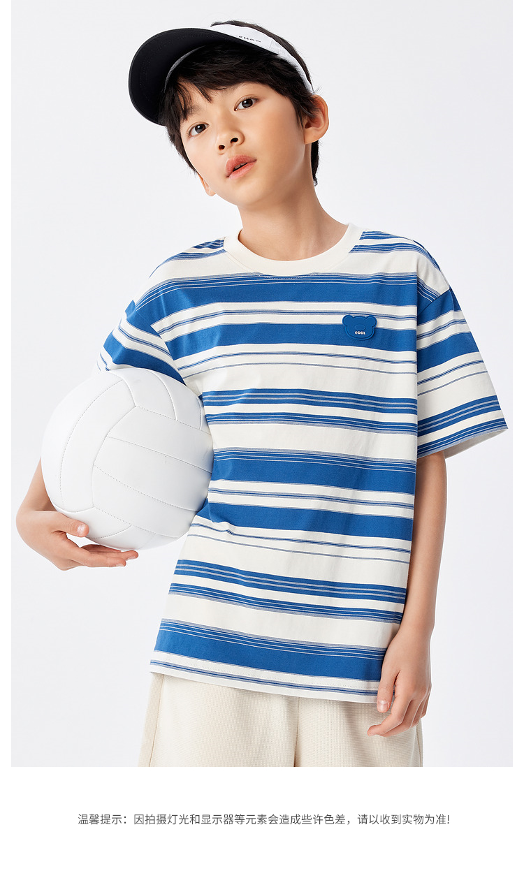 巴拉巴拉童装短袖条纹t恤男童夏季新款亲子纯棉打底上衣女酷