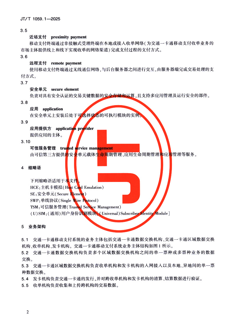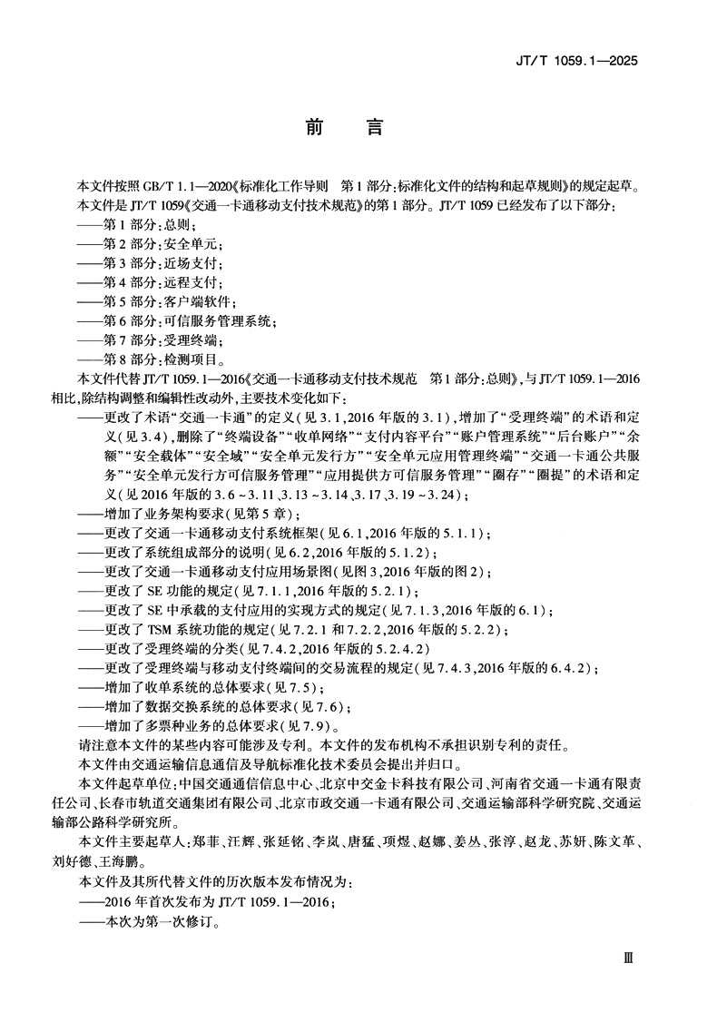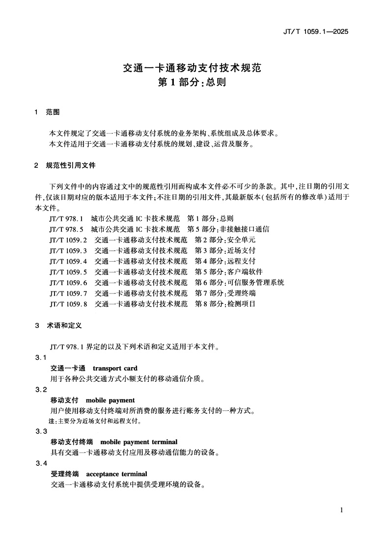 交通一卡通移动支付技术规范 第1部分:总则(JT/T 1059.1—2025)