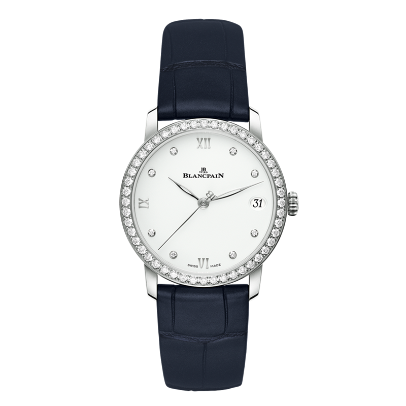 镜面 材质 | 蓝宝石水晶玻璃 | 表盘 | 精钢镶钻表壳 白色表盘,搭配钻石刻度时标 日期显示 |