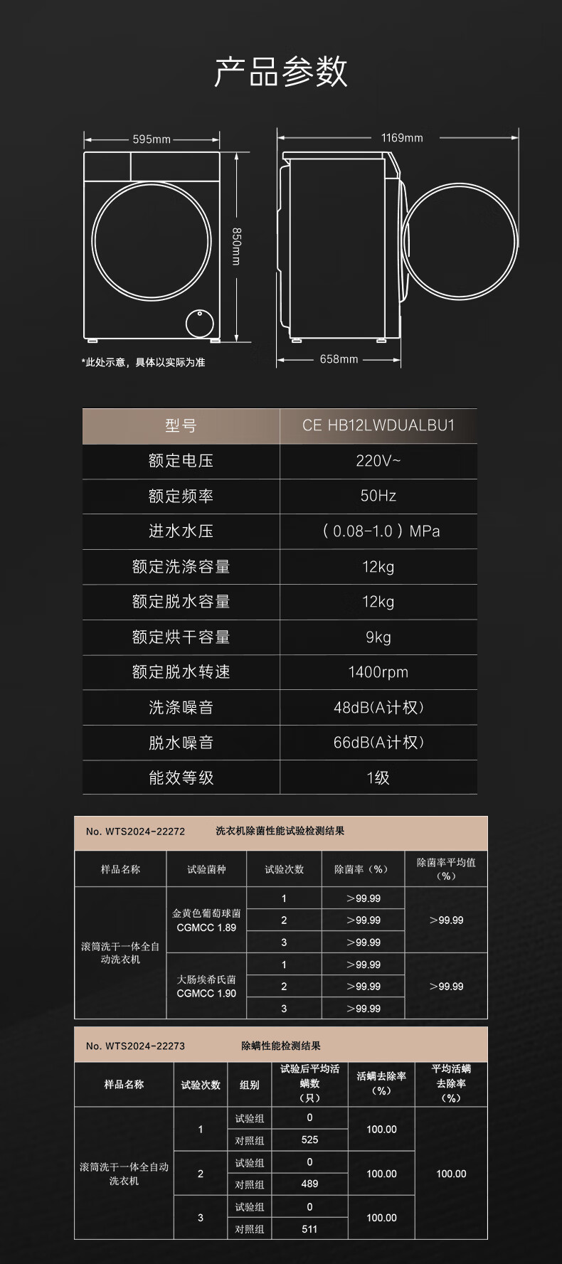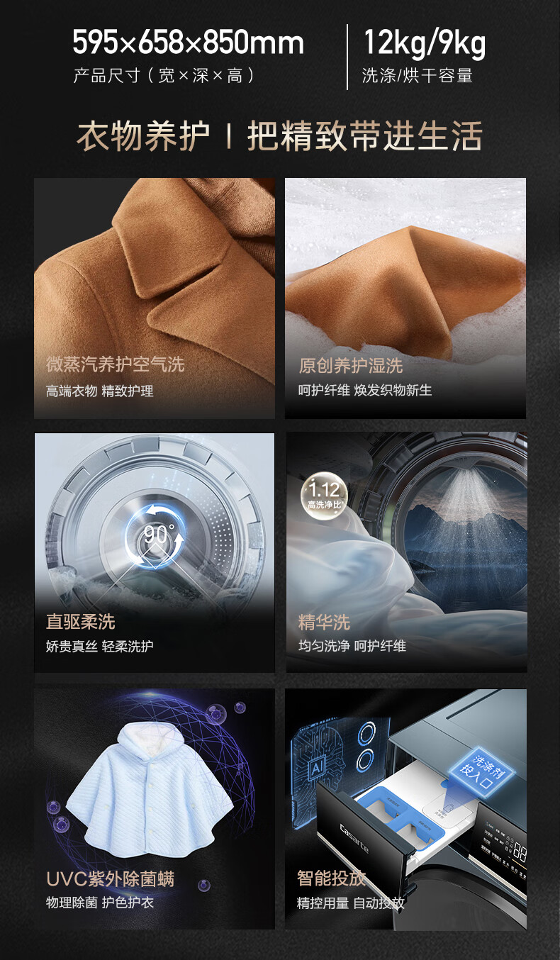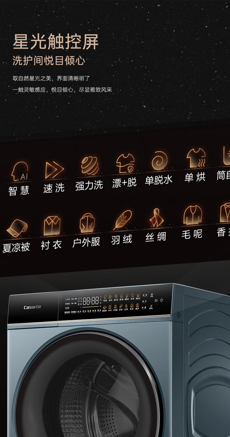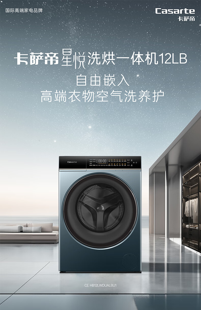 卡萨帝(Casarte)星悦LB滚筒洗衣机全自动家用 12公斤洗烘一体机 直驱精华洗 紫外除菌 家电以旧换新 HB12LWDUALBU1