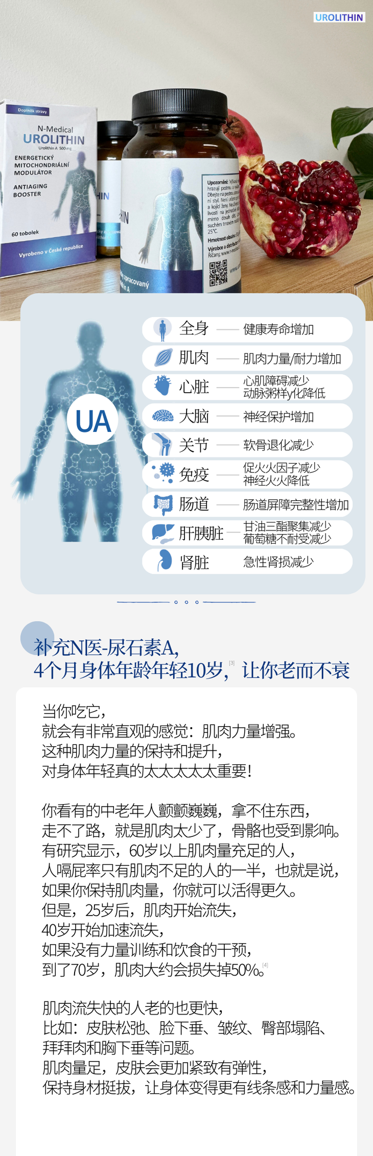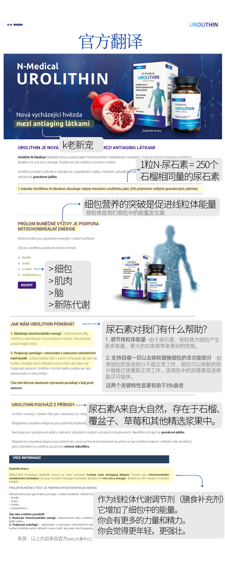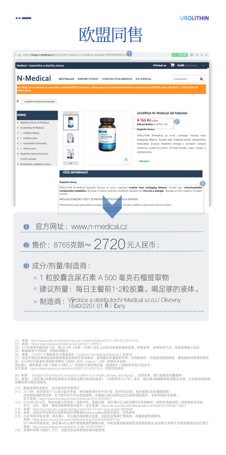捷克N-medical尿石素A 拉长健康生命线!1粒=250个天然有机石榴!富豪们的K衰秘密!K老更年轻60粒