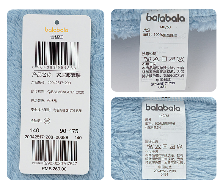 巴拉巴拉balaOne儿童家居服套装2025冬季法兰绒男女童睡衣可外出