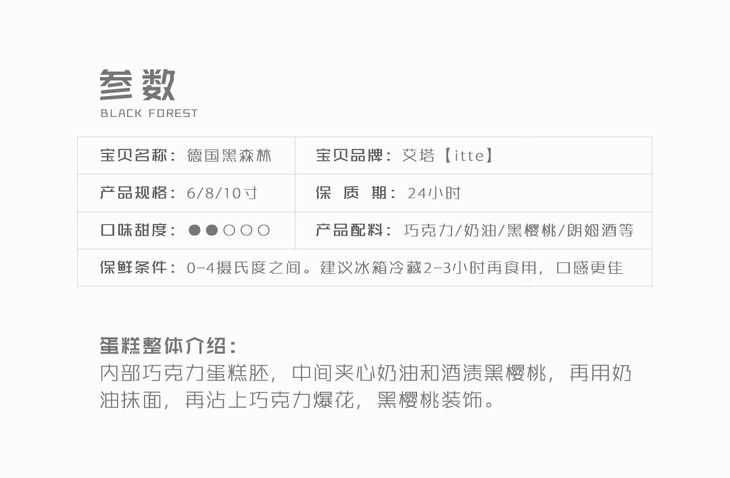 【德国黑森林】巧克力 黑樱桃 方型 巧克力蛋糕