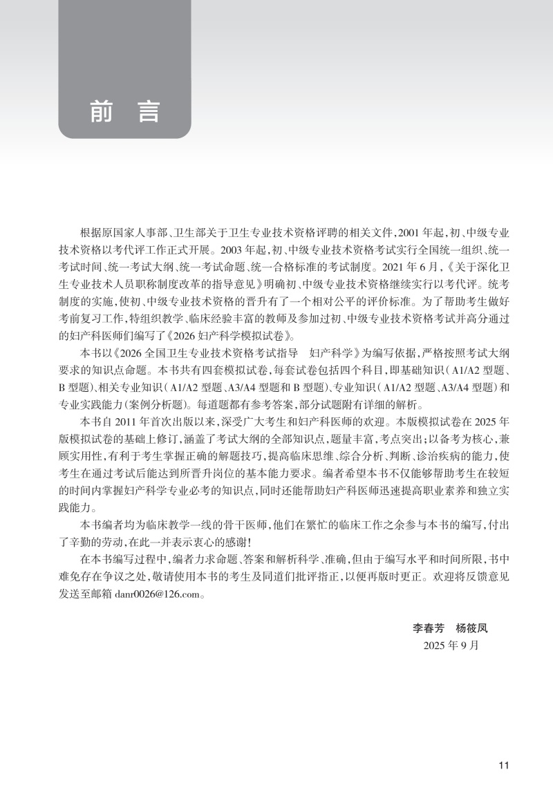 2026妇产科学模拟试卷 全国卫生专业技术资格考试习题集丛书 李春芳 杨筱凤 主编 适用专业妇产科学(中级)330 人民卫生出版社
