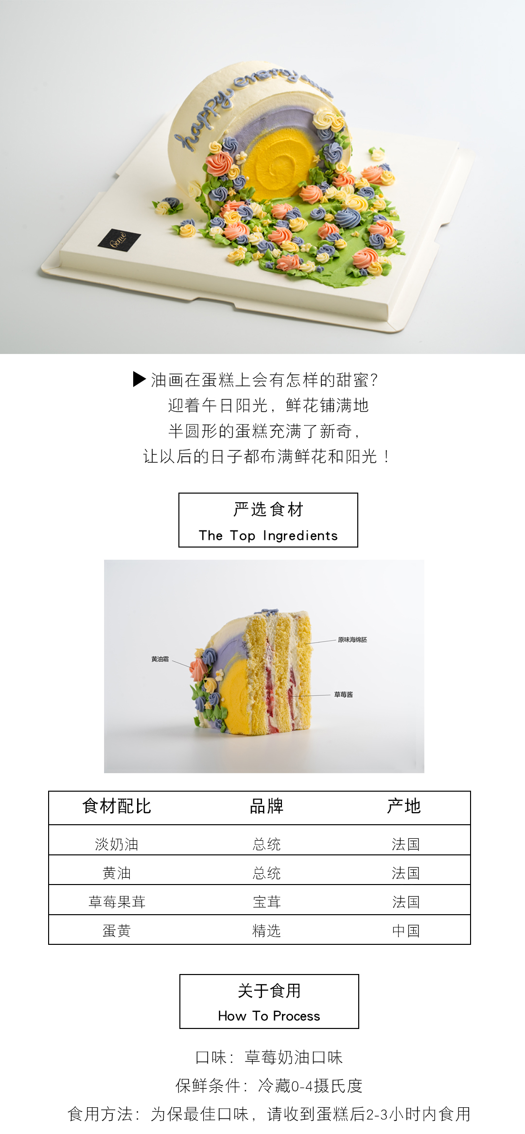 注:本款使用进口天然可食用色素,均通过正规食品安全检测,但再好的色素吃完口腔都会有色素残留。彩色蛋糕色素较重,可在食用时将彩色奶油刮弃。因拍摄环境和西点师制作手工差异导致色差在所难免。如果您介意,可以挑选浅色或原色的款式呦!