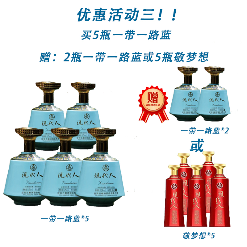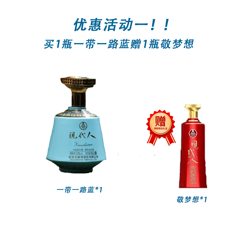 五粮液现代人 一带一路蓝 浓香型白酒500ml 买1赠1瓶敬梦想【LY】