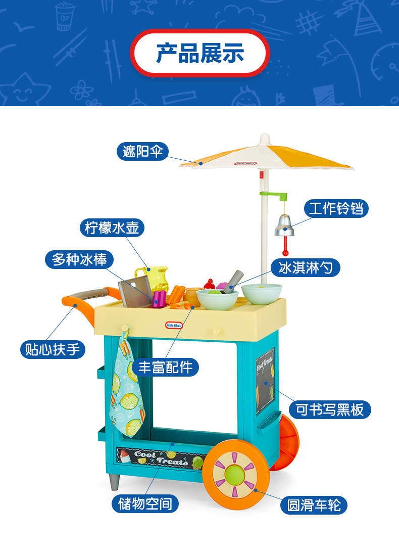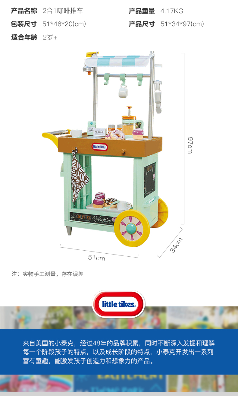 小泰克littletikes 咖啡甜品小推车儿童经营摆摊宝宝趣味过家家玩具