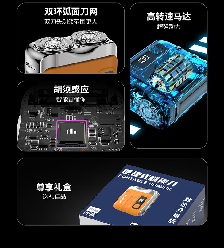 新款电动剃须刀MINI便携迷你男士刮胡刀type-c快充待机刮鬍刀