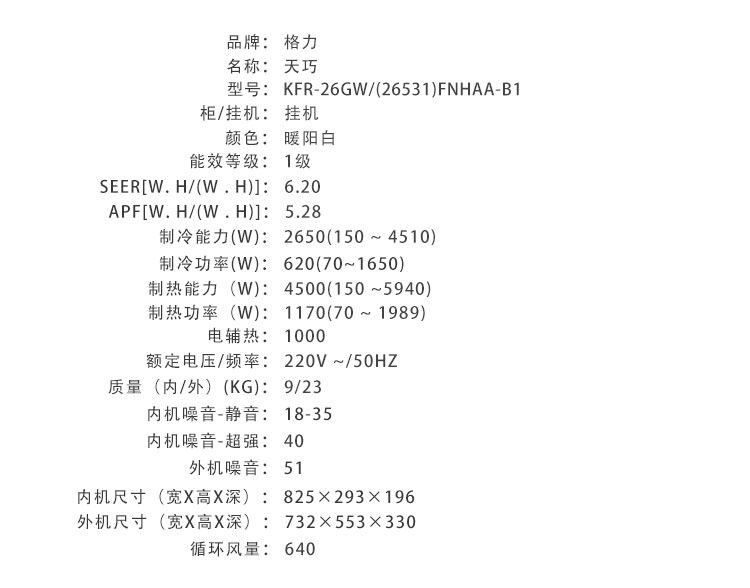 格力·天巧变频冷暖大1匹1级能效挂机空调 KFR-26GW/(26531)FNhAa-B1(含管) 顶(暖阳白)