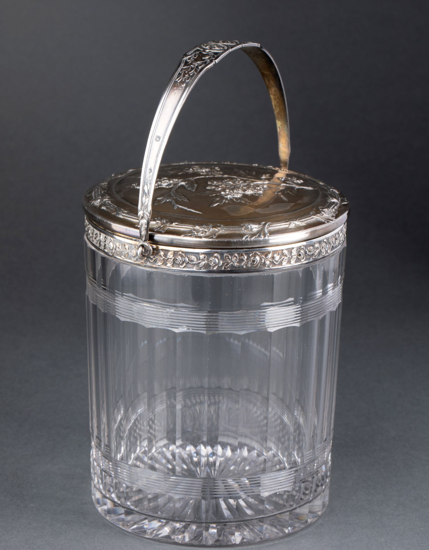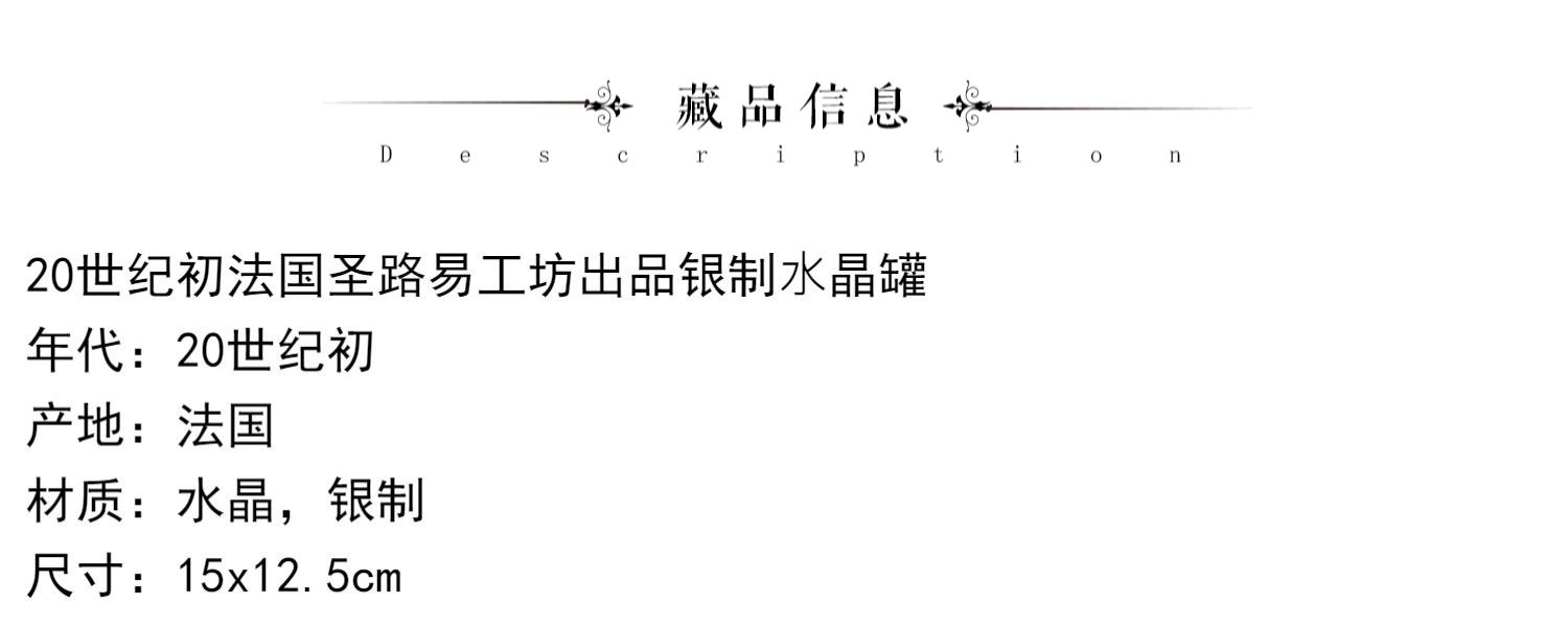 独角鹿西洋古董20世纪初法国圣路易工坊出品银制水晶罐饼干桶