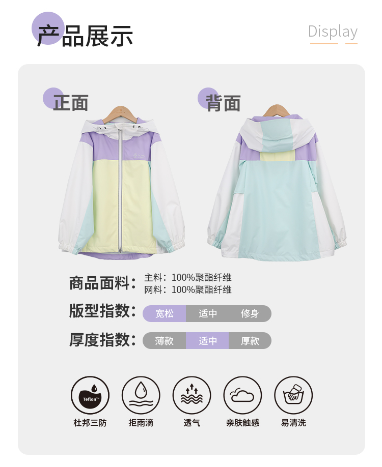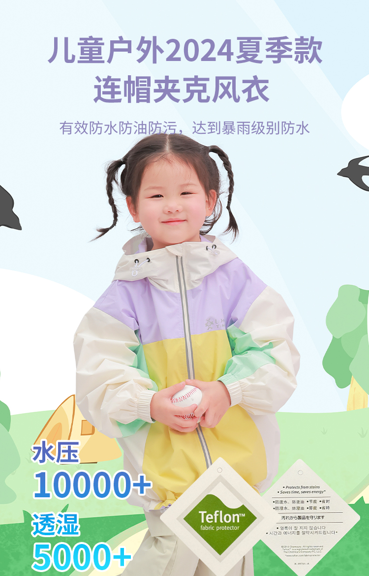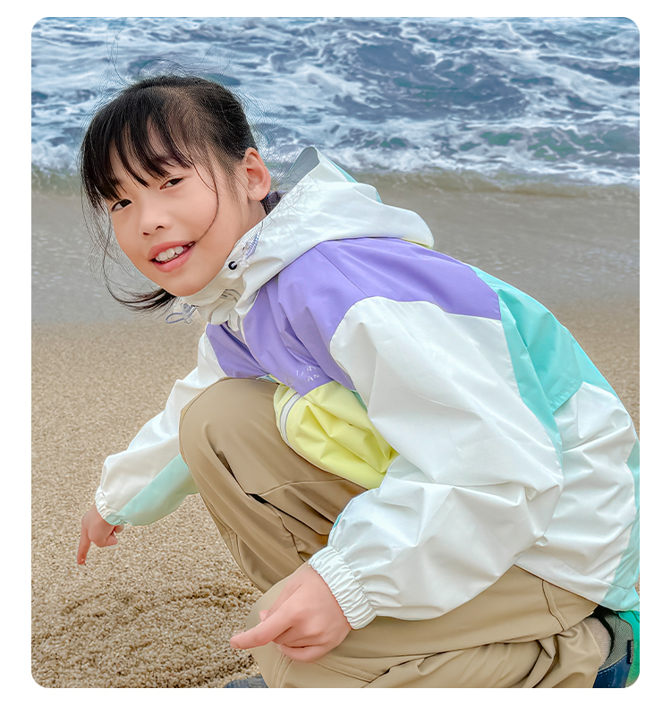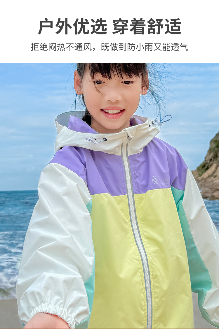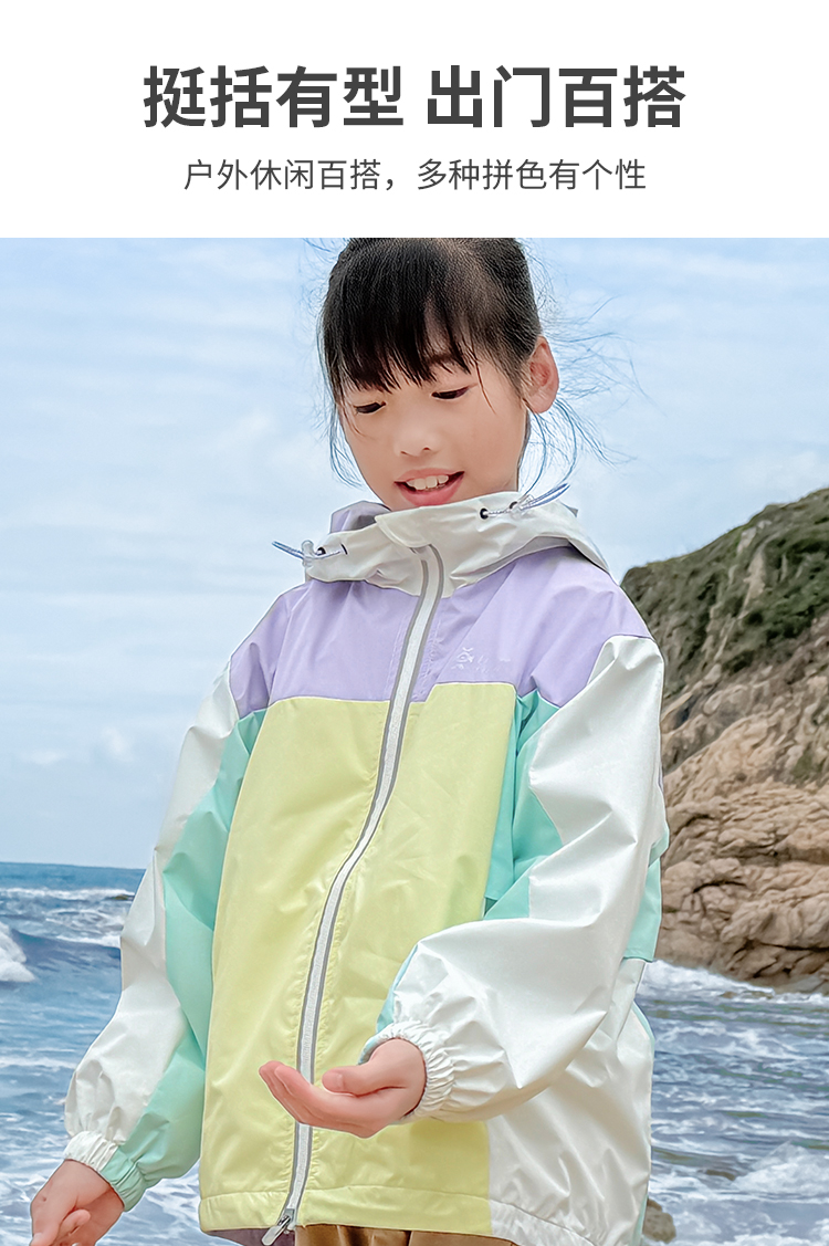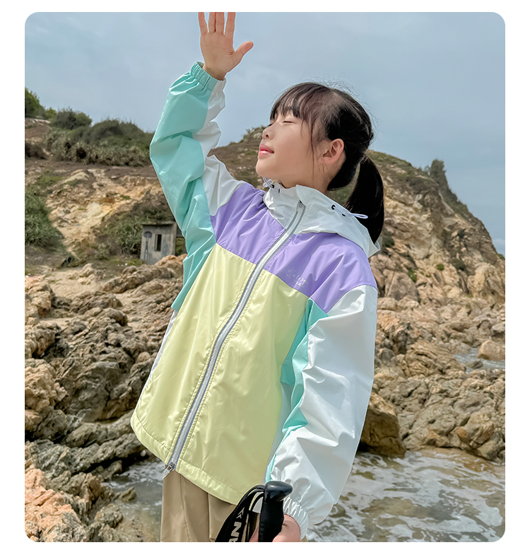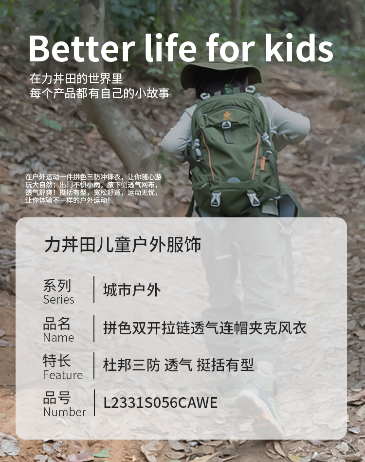 力丼田2024春夏新款|儿童城市户外拼色双开拉链透气连帽夹克风衣 L2331S056CWE