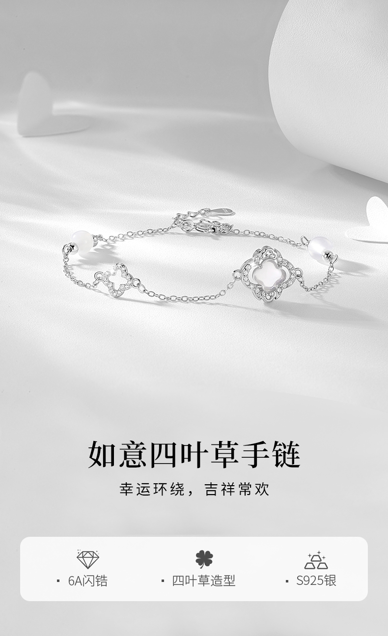 卡蒂罗KADER 如意四叶草手链 新中式国潮925银四叶草叠戴精致轻奢小众设计拼接链 平安顺遂璀璨闪耀
