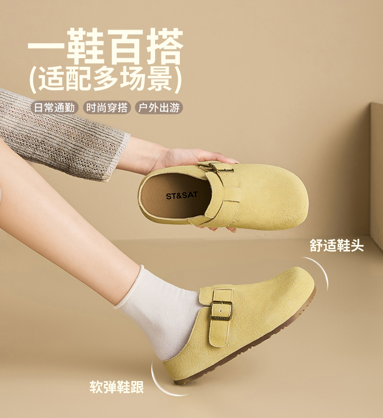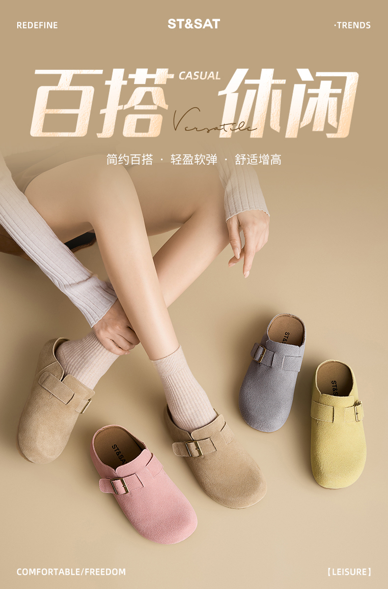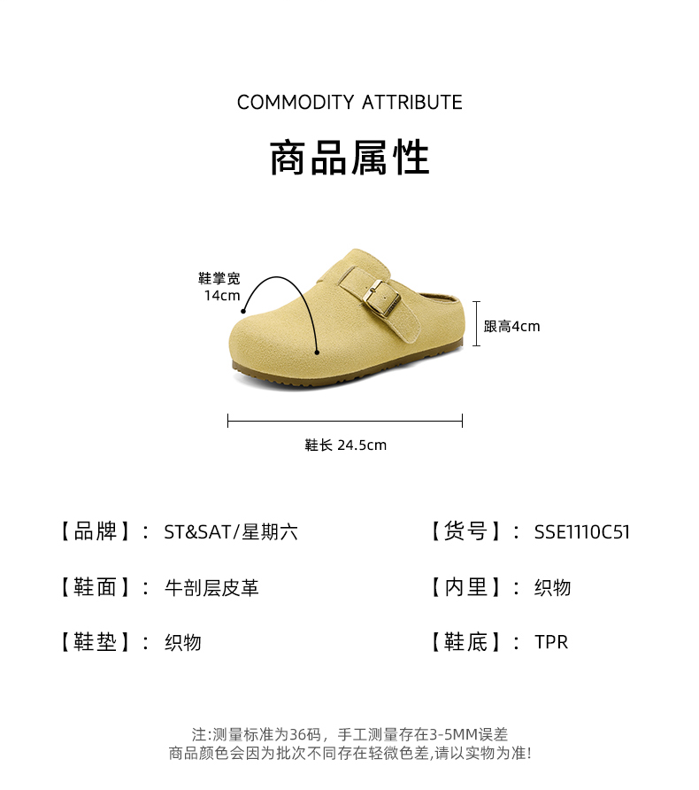 星期六26春新款复古单扣厚底增高勃肯拖SSE1110C51