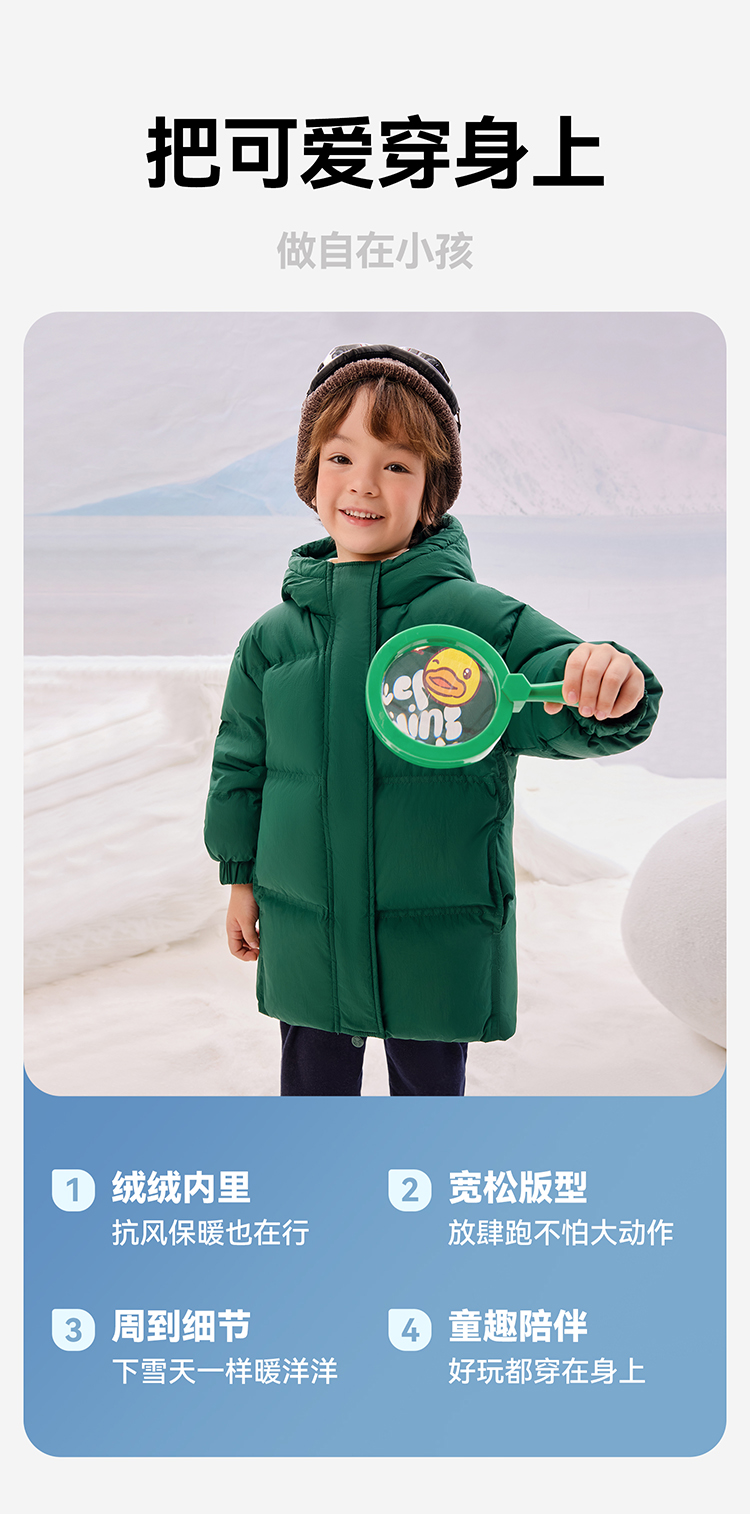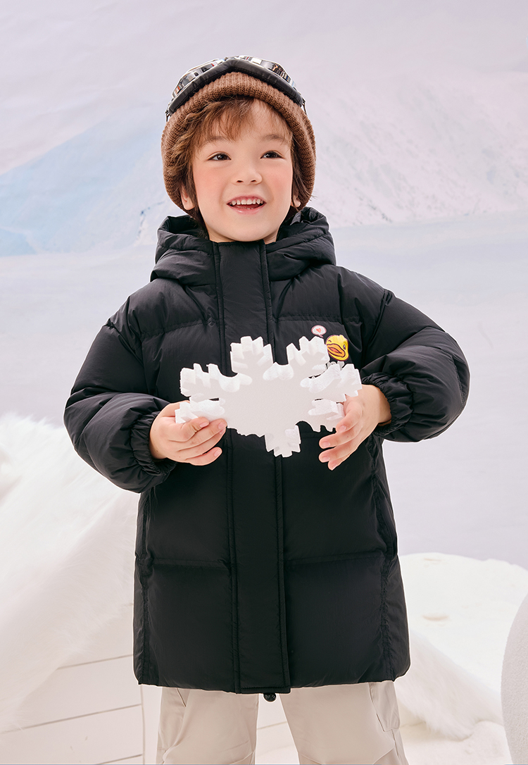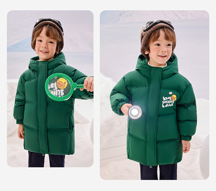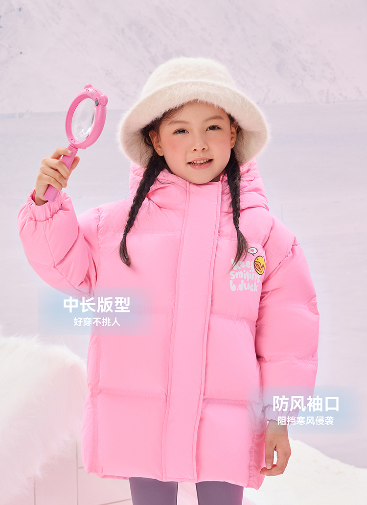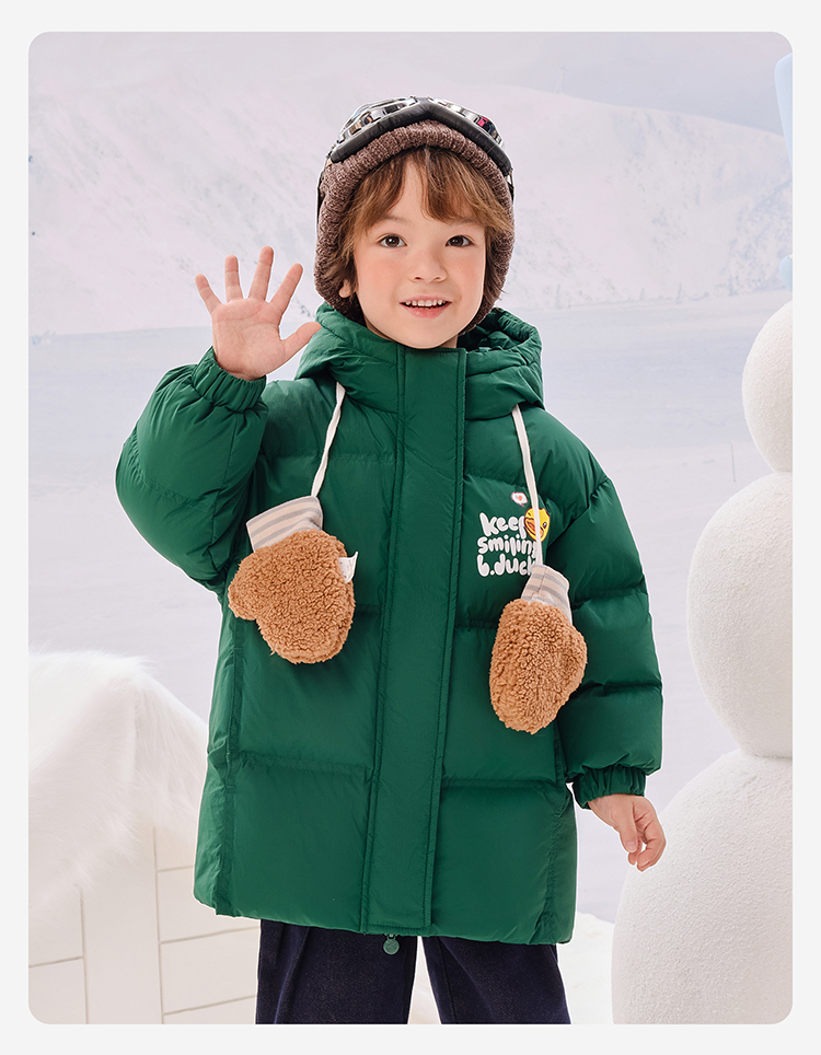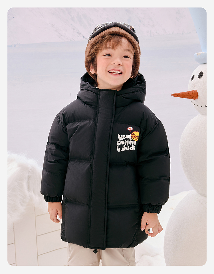 B.Duck小黄鸭童装冬季男女童连帽羽绒服中长款外套105-150 BF5516011