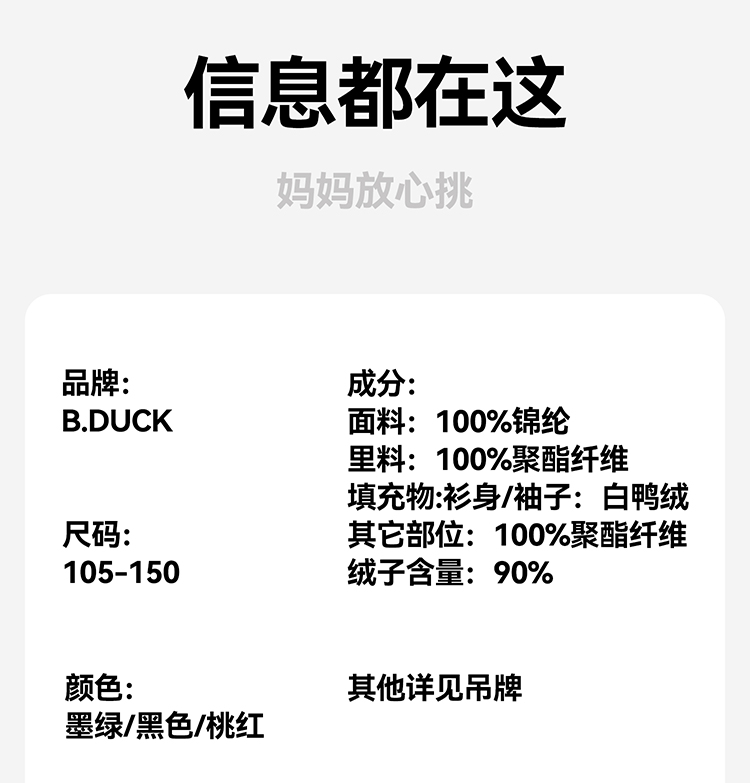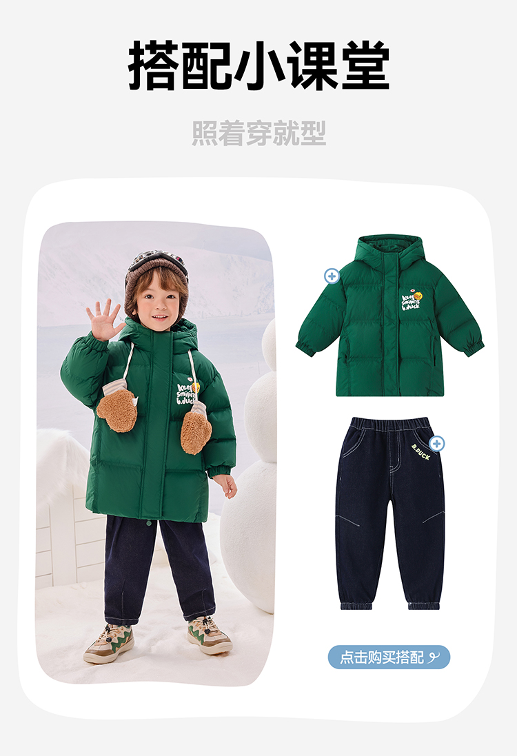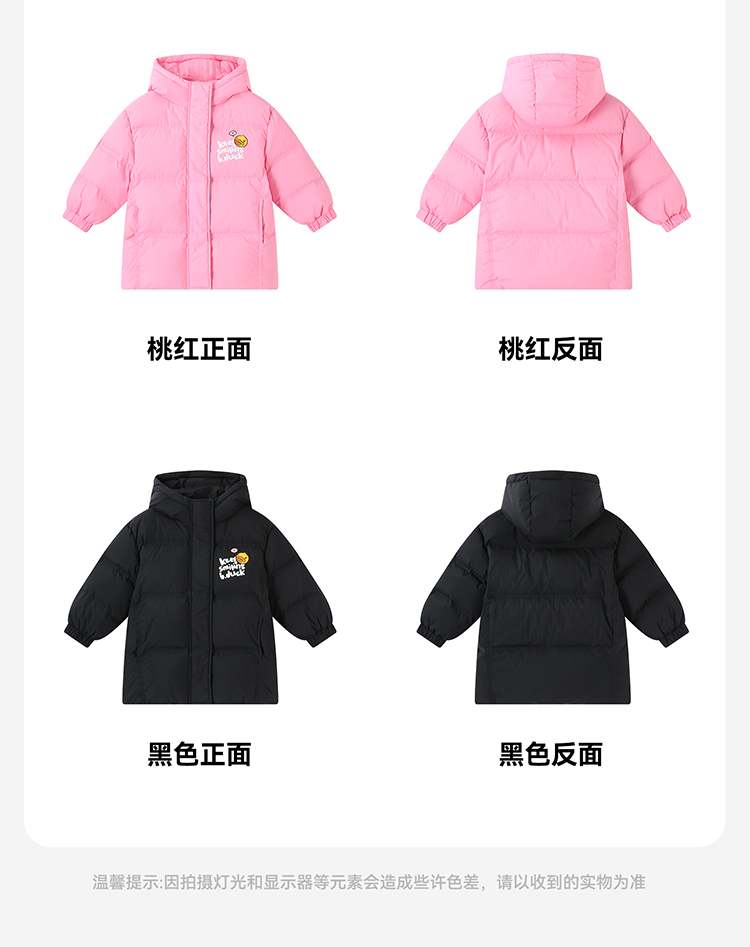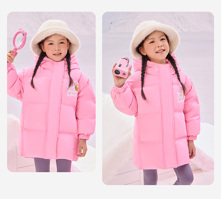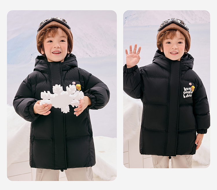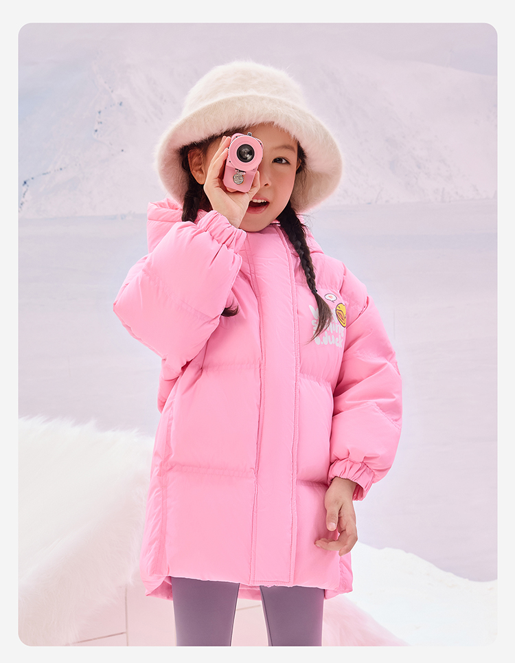 B.Duck小黄鸭童装冬季男女童连帽羽绒服中长款外套105-150 BF5516011
