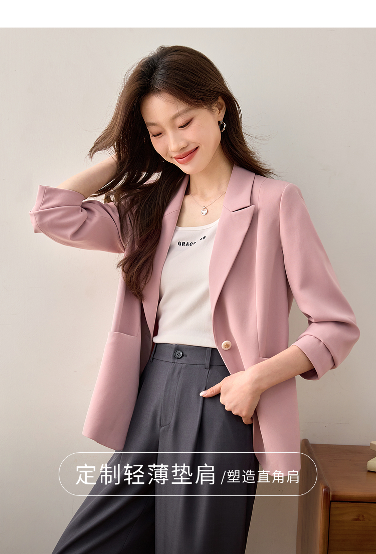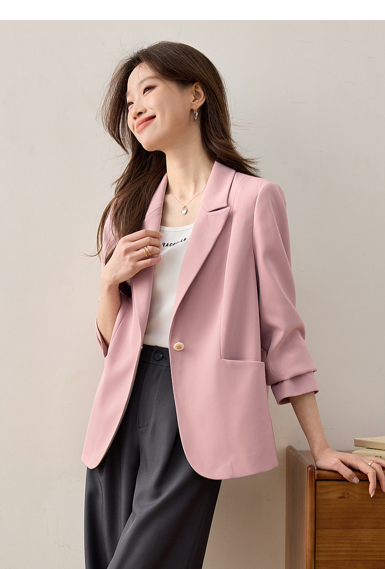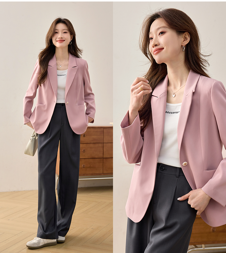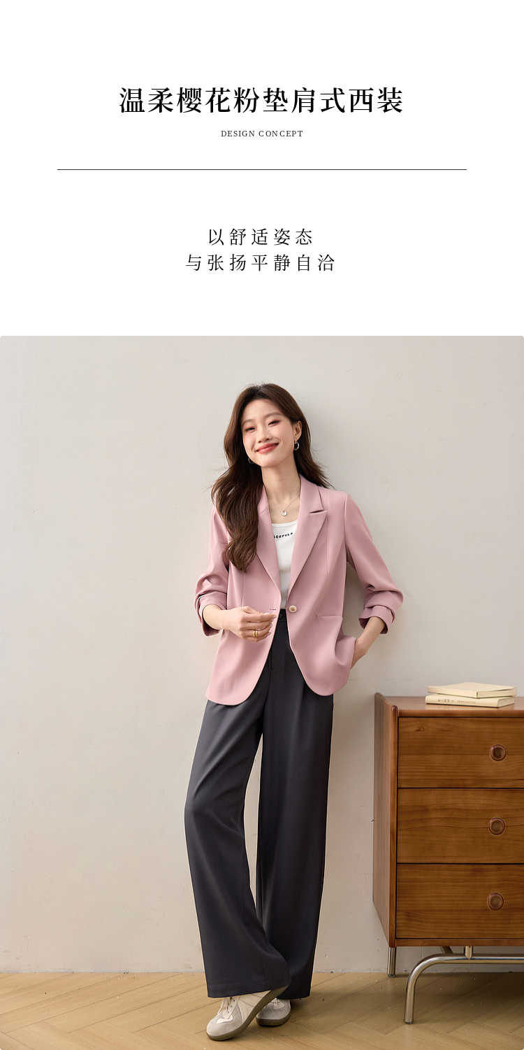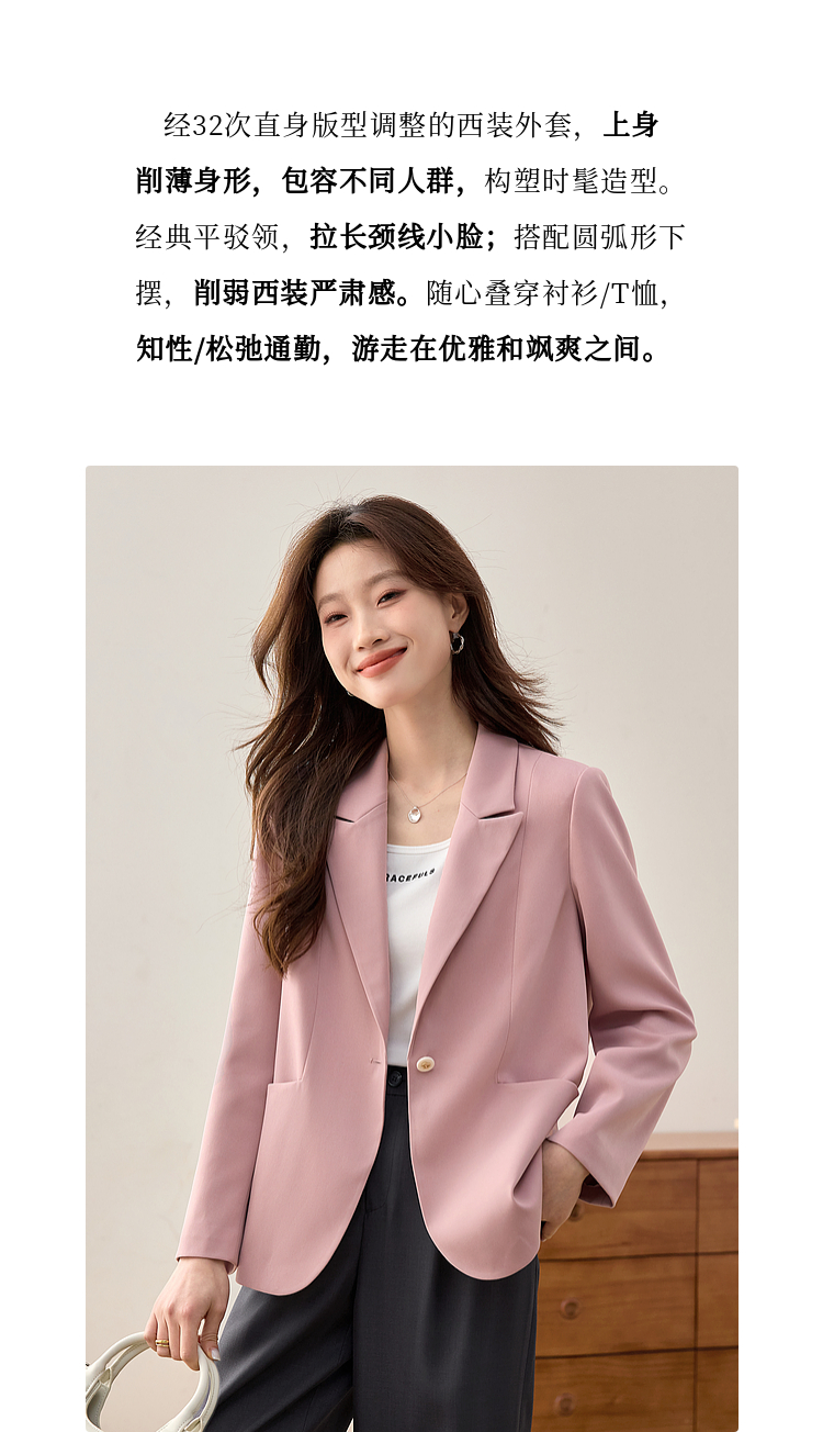 【春夏新品】熙世界一粒扣粉色西装外套2025年春季新款设计感通勤修身小西服