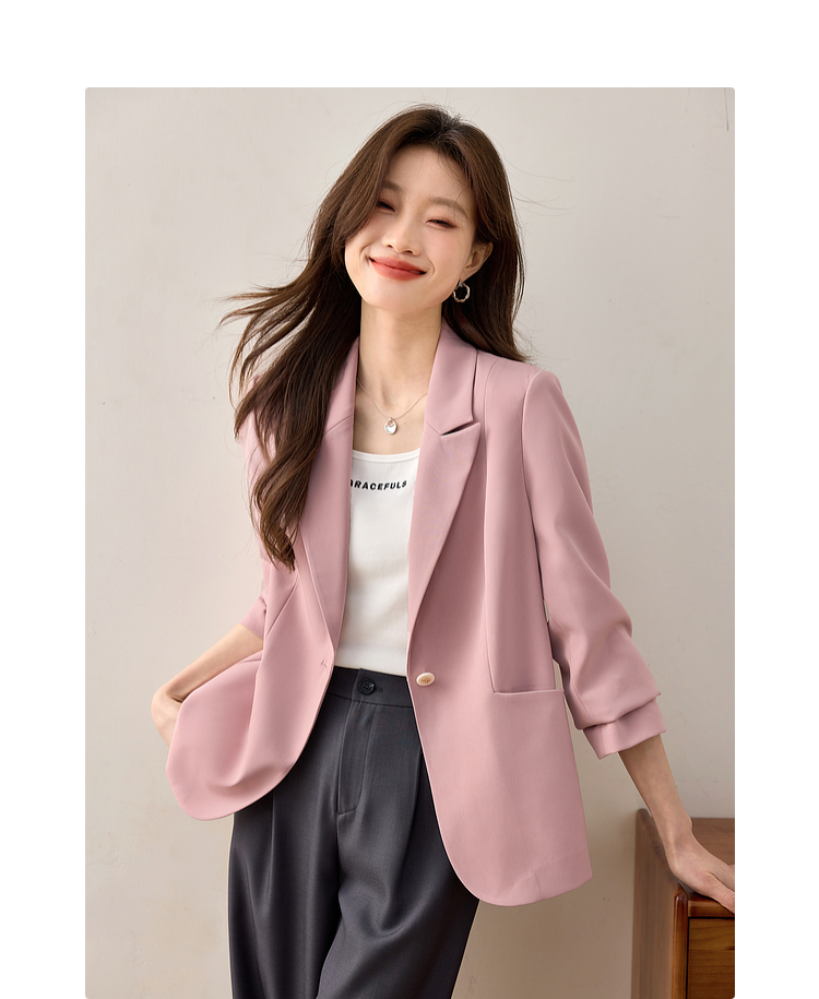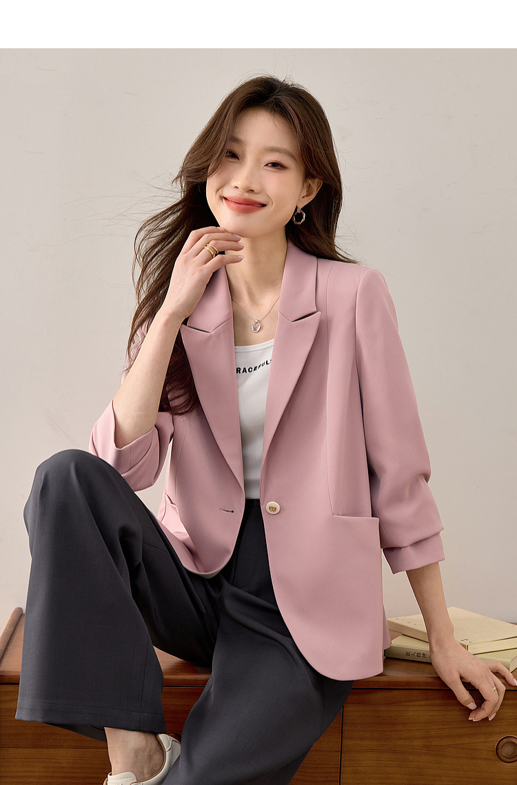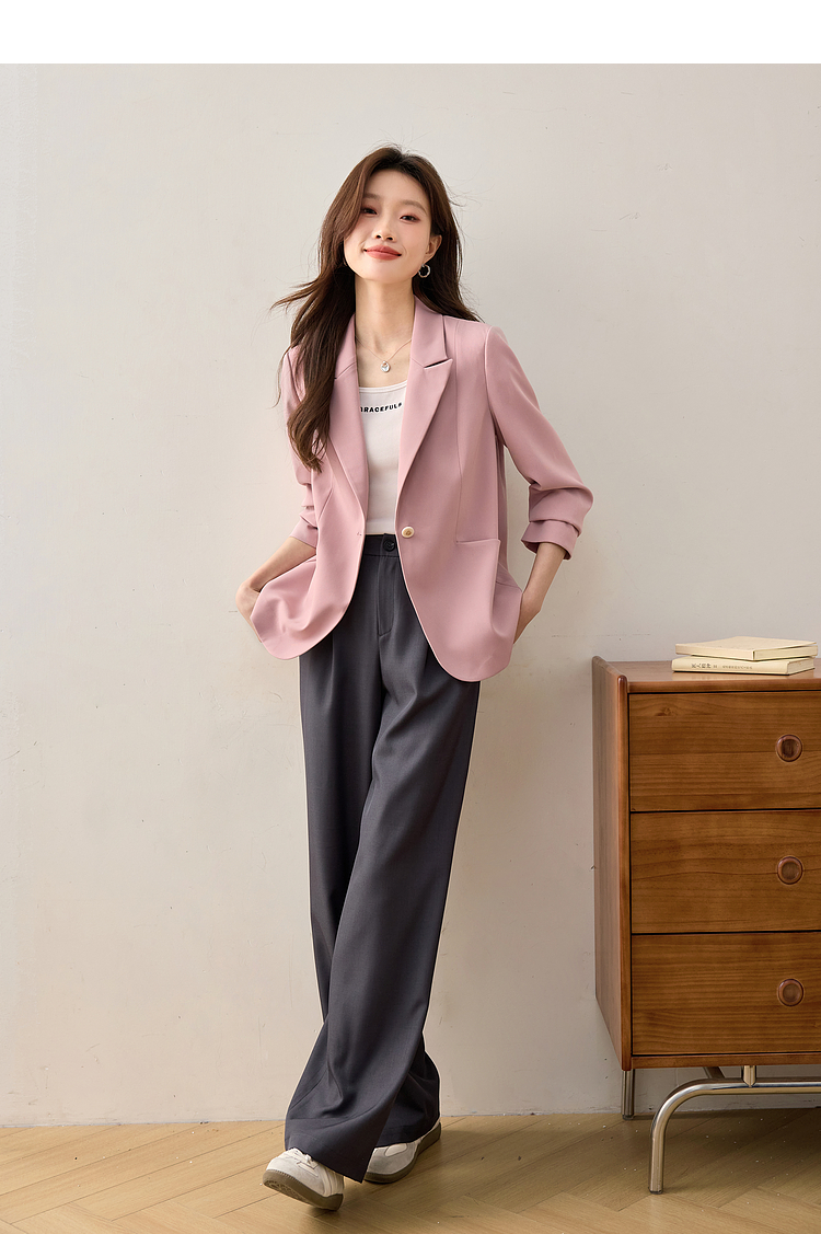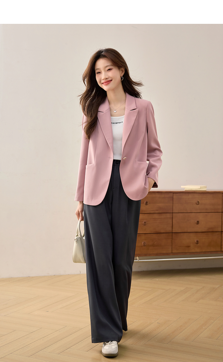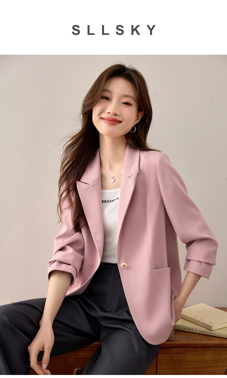 【春夏新品】熙世界一粒扣粉色西装外套2025年春季新款设计感通勤修身小西服