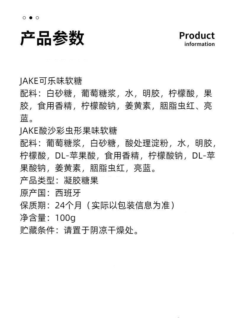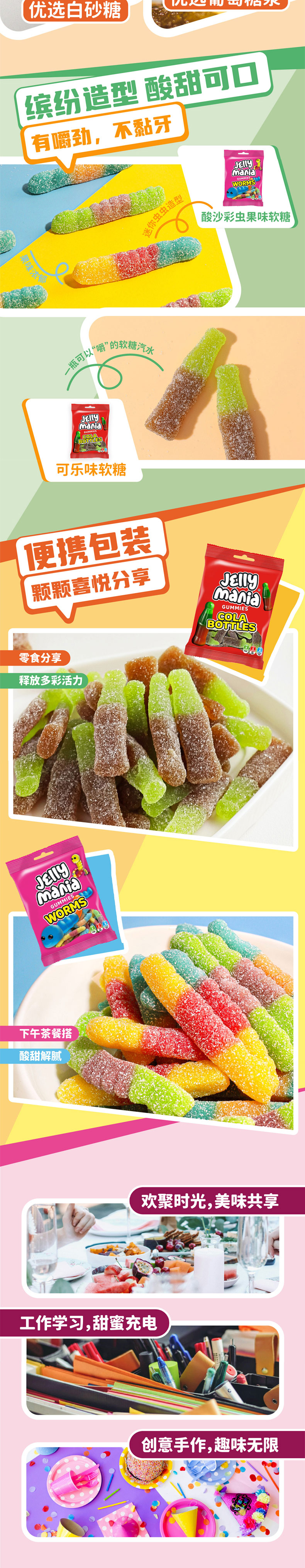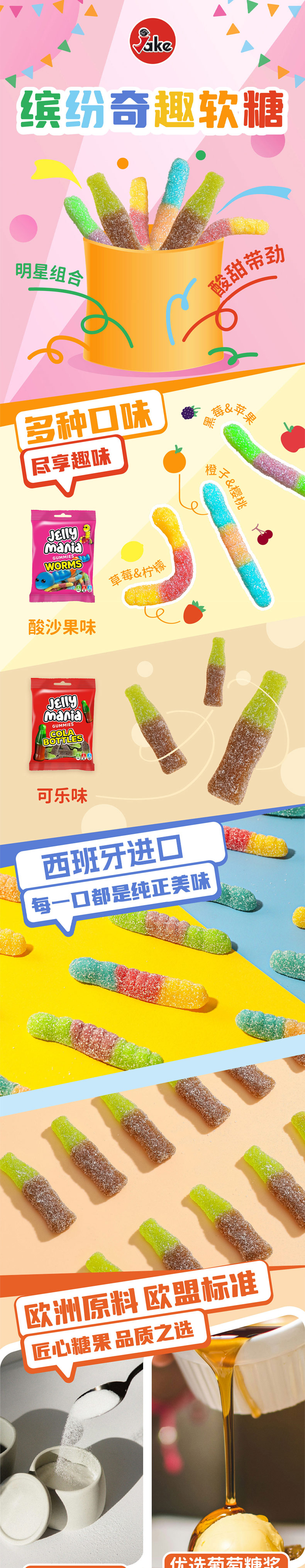 西班牙进口JAKE可乐味|酸沙彩虫果味软糖100g