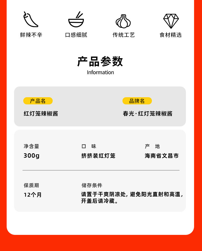 红灯笼辣椒酱300g*2挤挤装 厨房调味