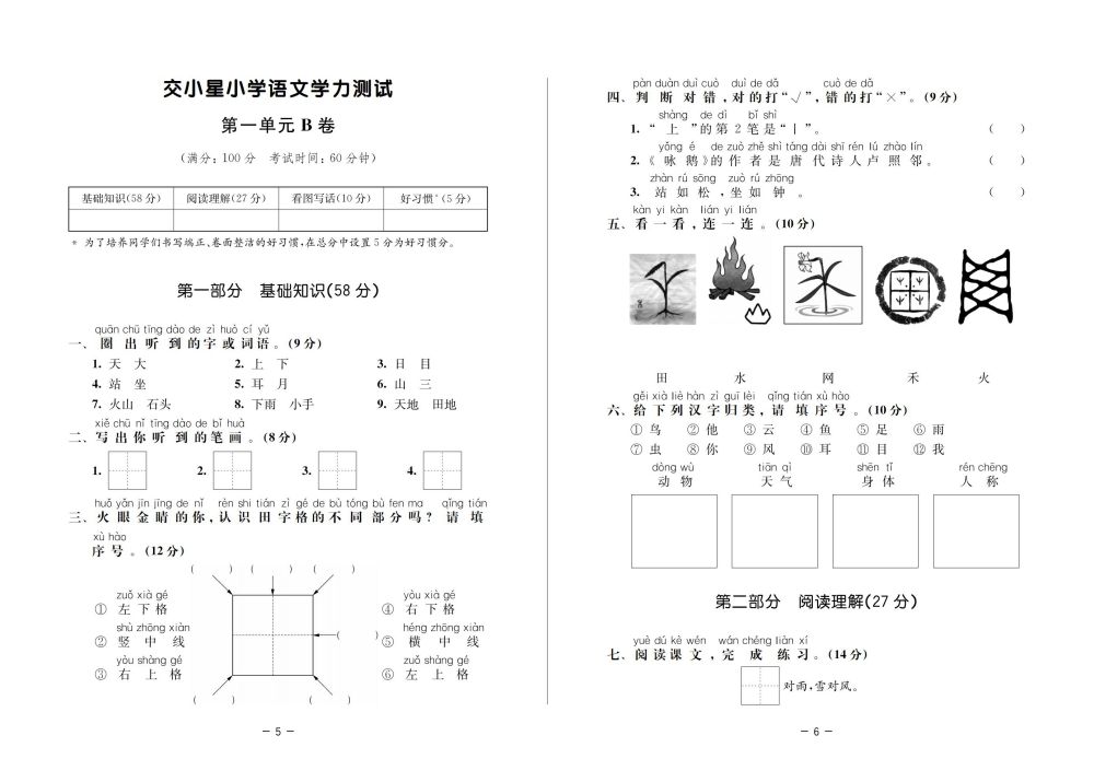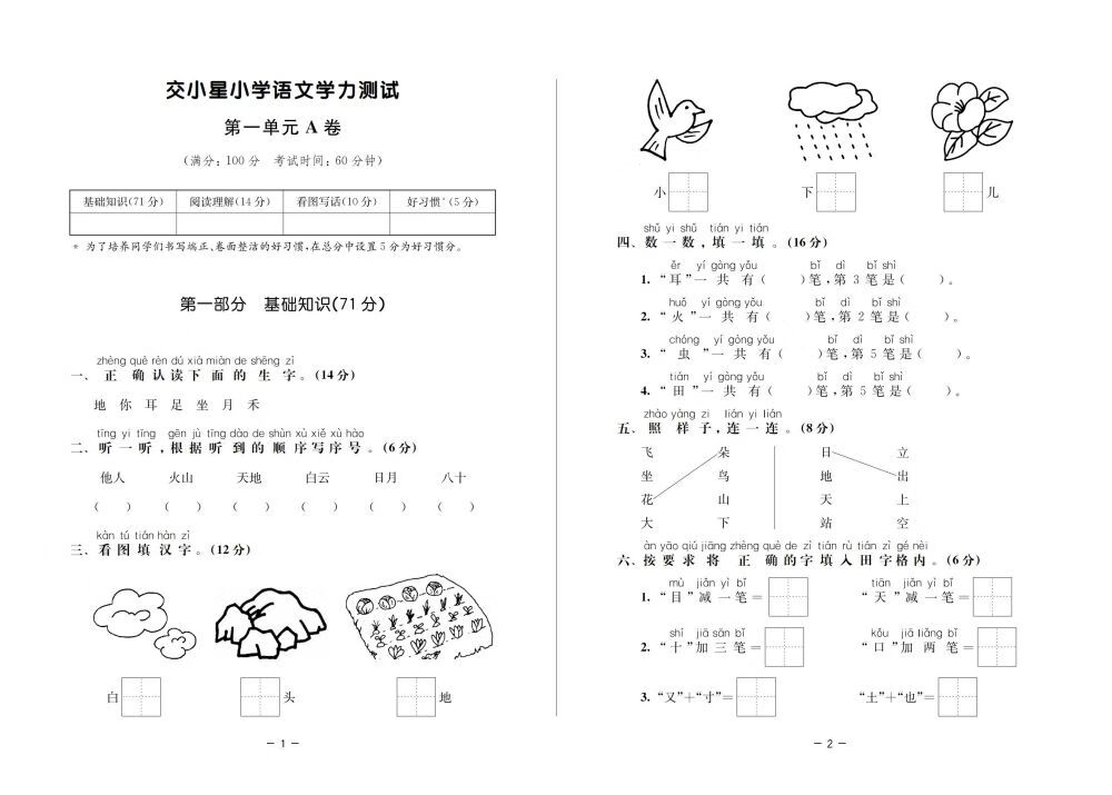 (仓发) 交小星小学语文学力测试 一年级1年级 第一学期 上海同步 交大之星 秋/上海交通大学出版社/9787313231321