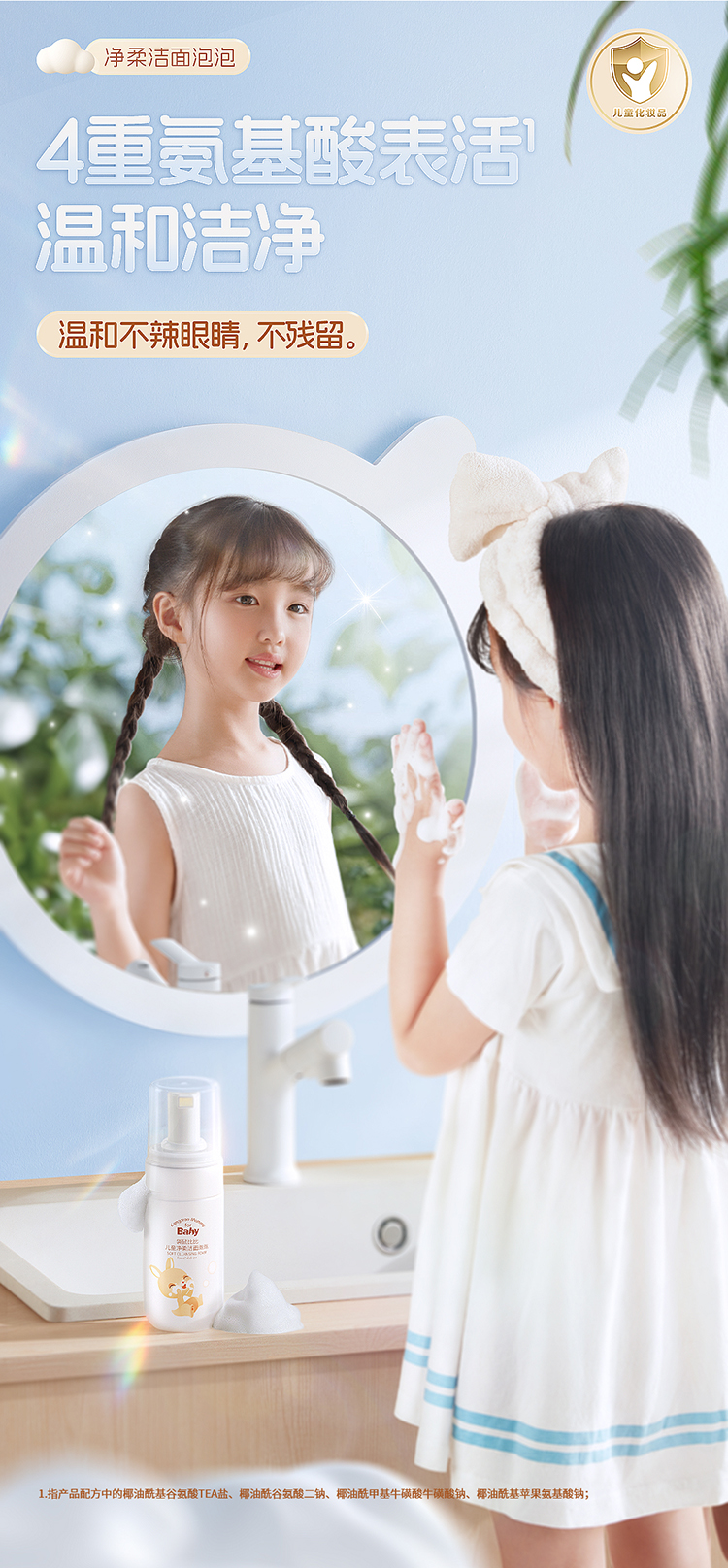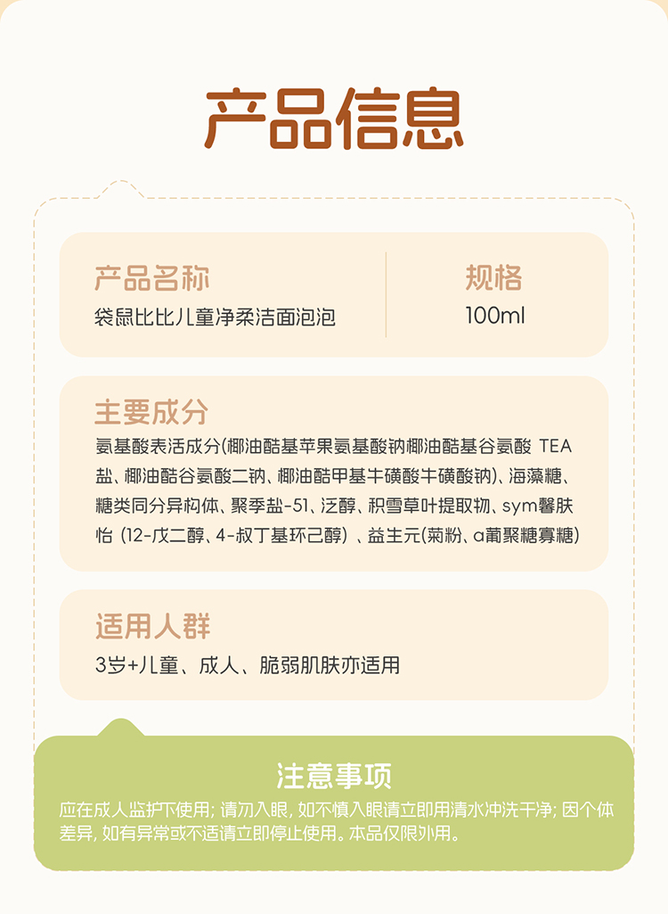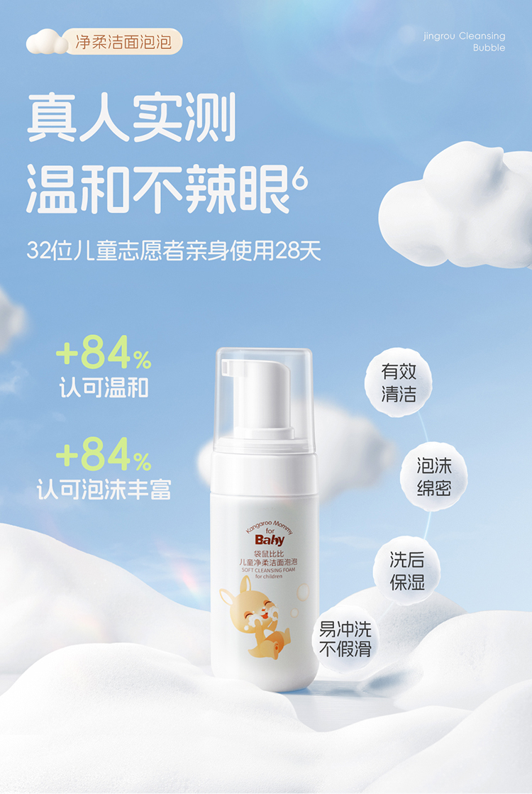 【儿童洁面泡泡】3岁+宝宝洁面 细腻云柔奶泡 温和无泪 水润清洁更保湿 儿童净柔洁面泡泡(100ml)