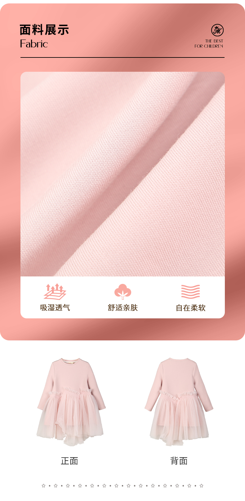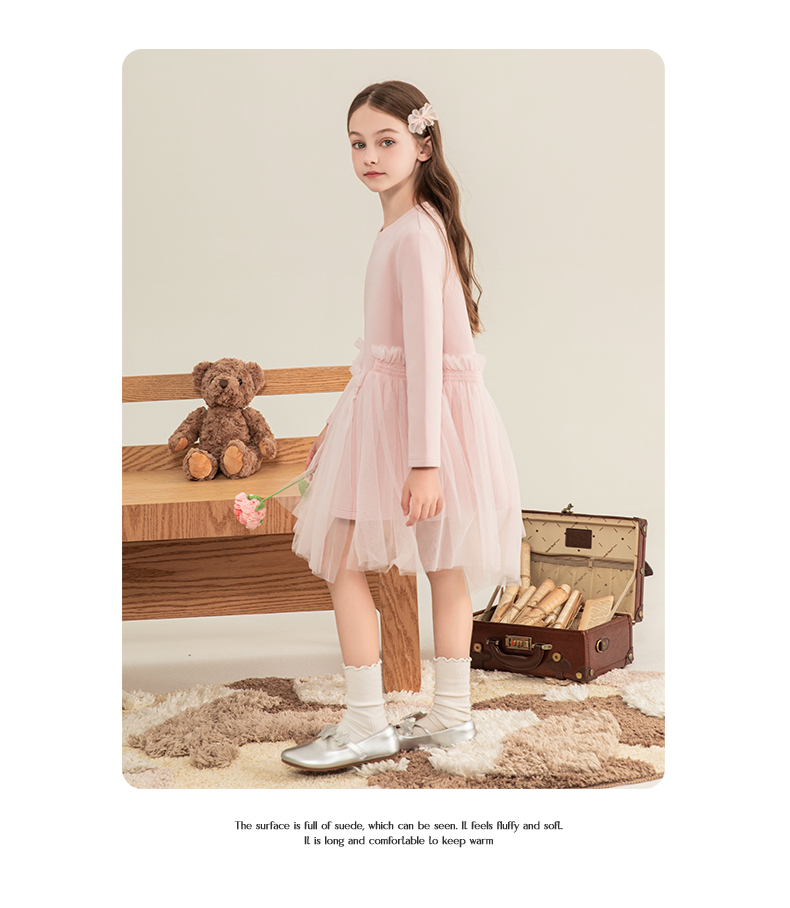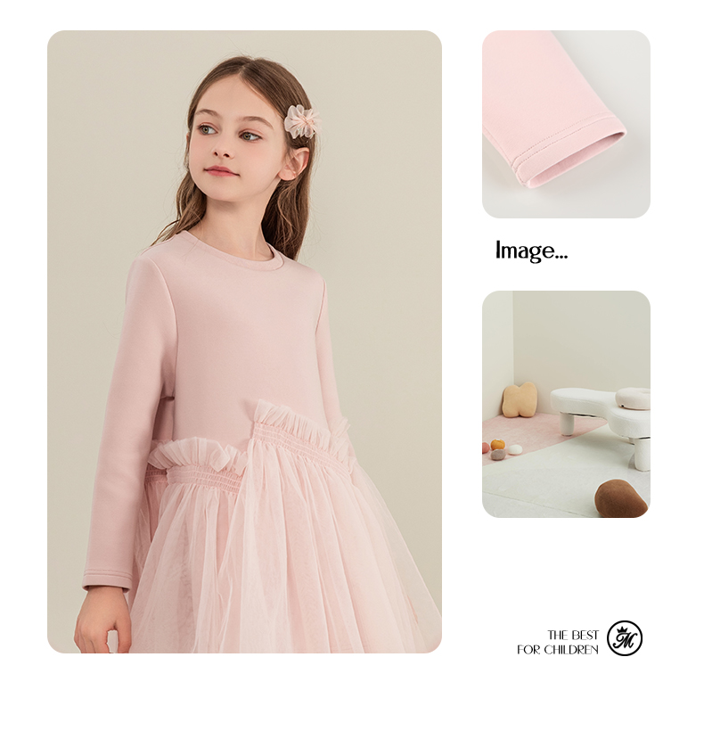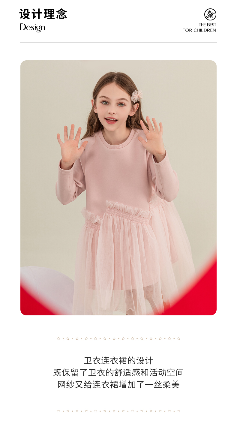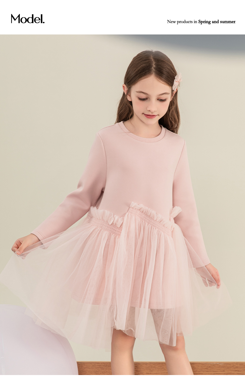 mettekids女童连衣裙2023秋季新款儿童公主裙中大童粉色甜美裙子