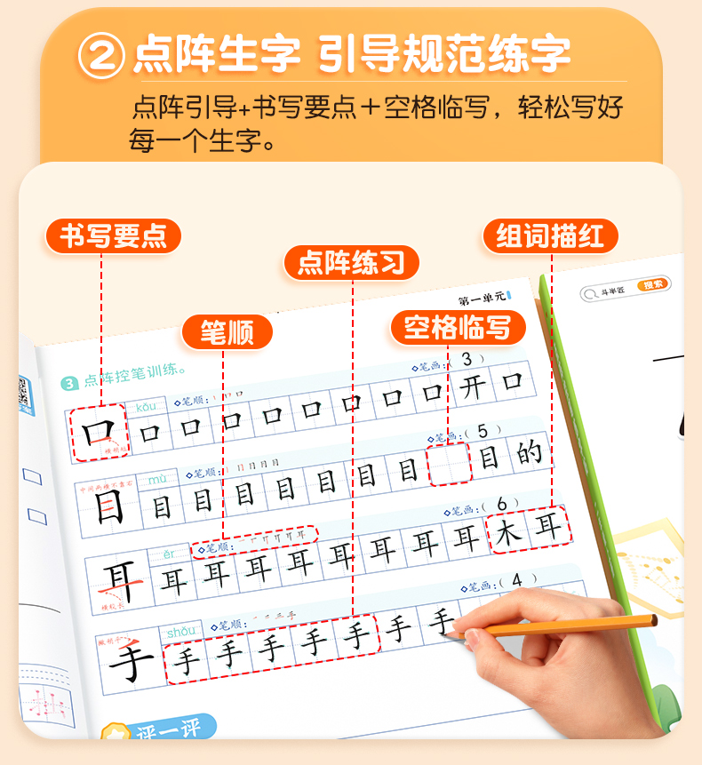 【斗半匠】点阵控笔训练1-6年级上册语文控笔点阵笔画