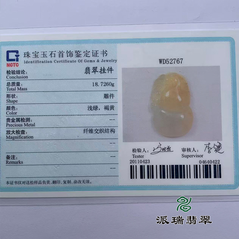 派瑞翡翠 翡翠挂件 冰种 黄翡
