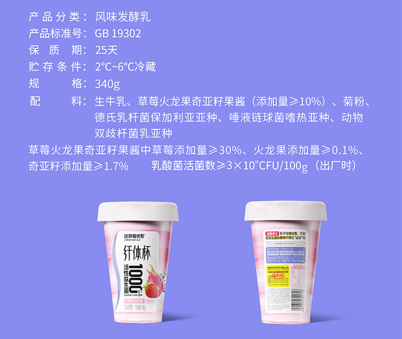 【预售】达芬奇0蔗糖纤体杯益生菌酸奶340g*6杯