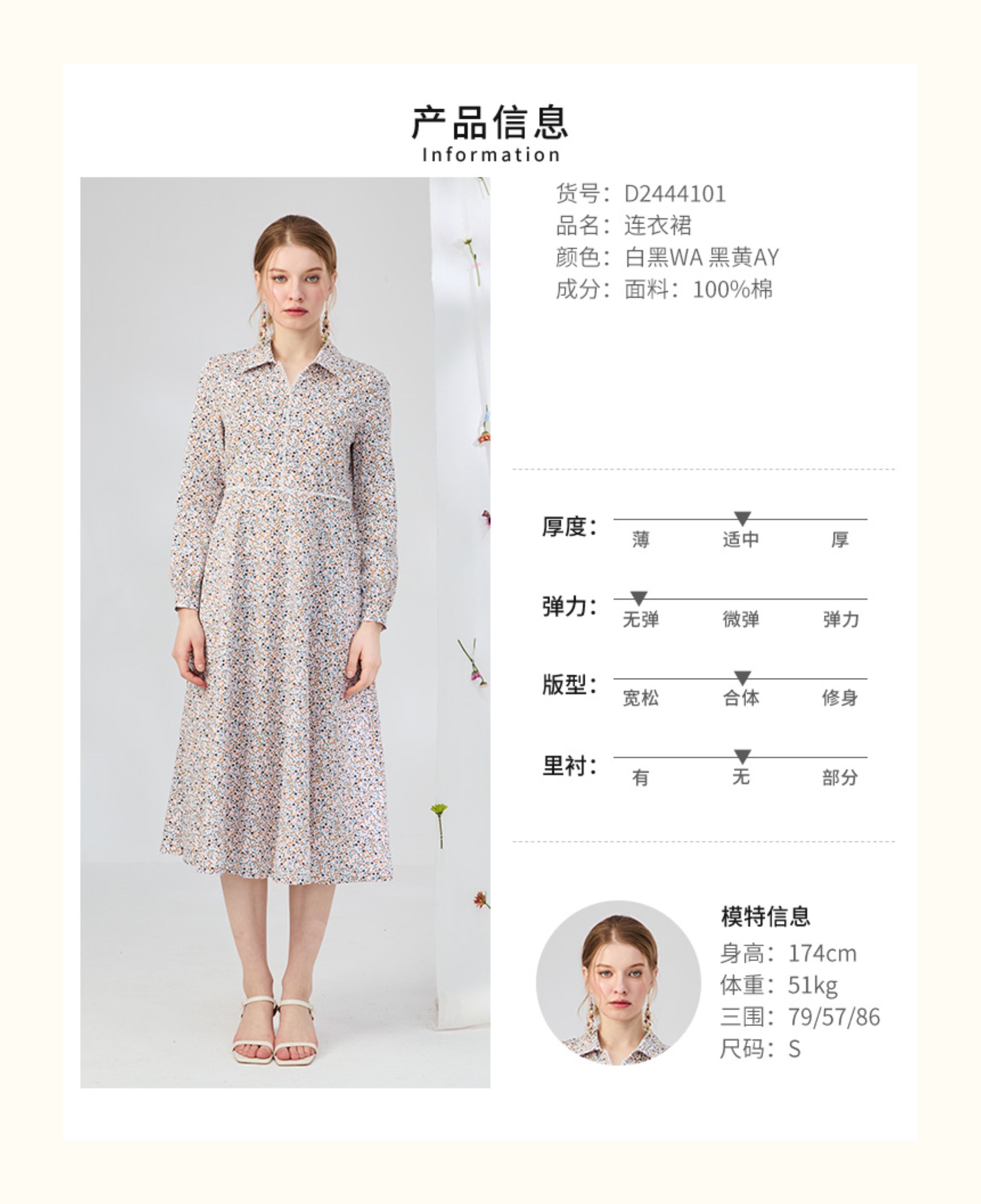 VIVIAN LIU薇薇安刘D2444101夏女装新款翻领碎花收腰连衣裙
