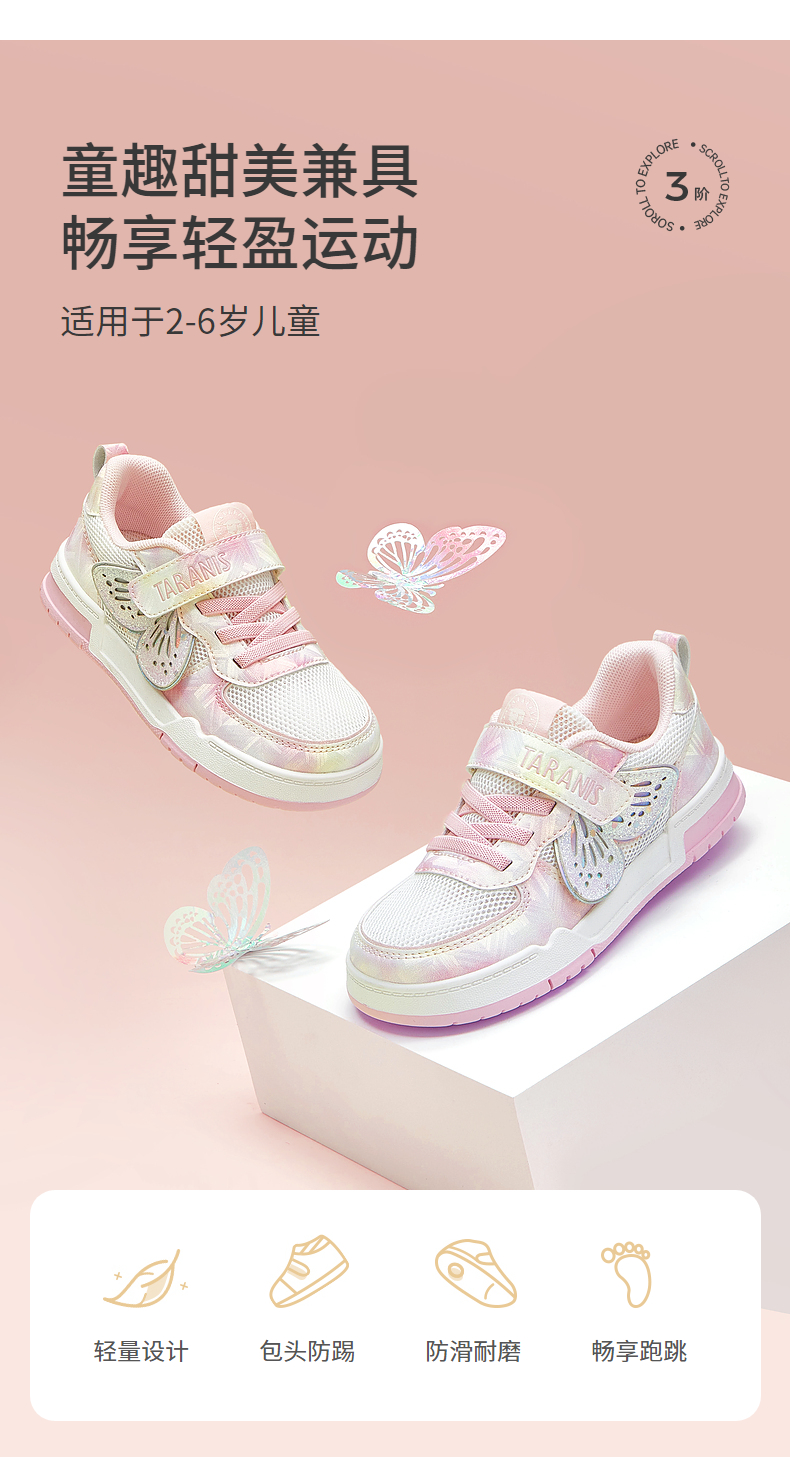 泰兰尼斯童鞋春季新款女童板鞋防滑软底儿童鞋子休闲运动鞋机能鞋 T02X5A5866