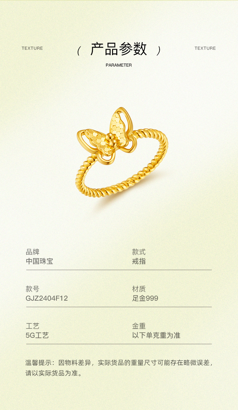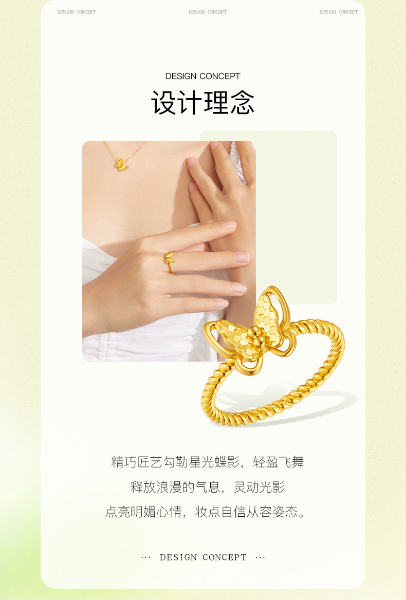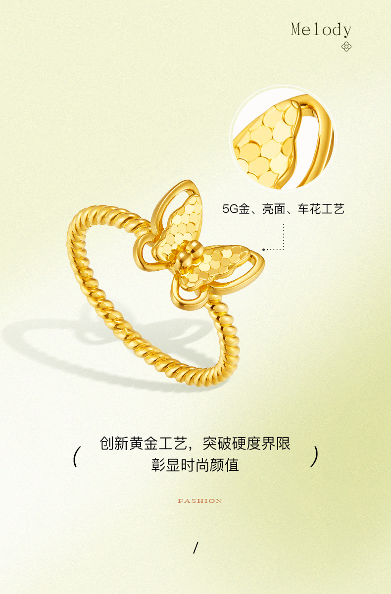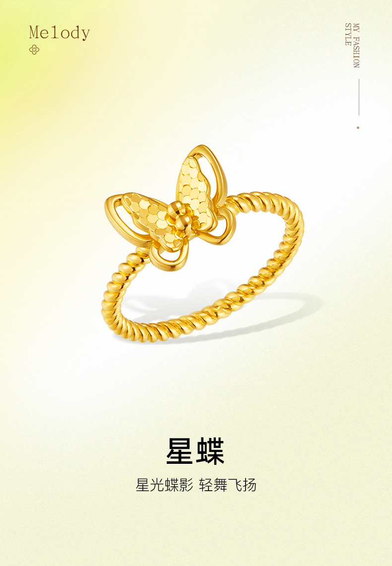 「追光」星蝶黄金足金蝴蝶爆闪戒指
