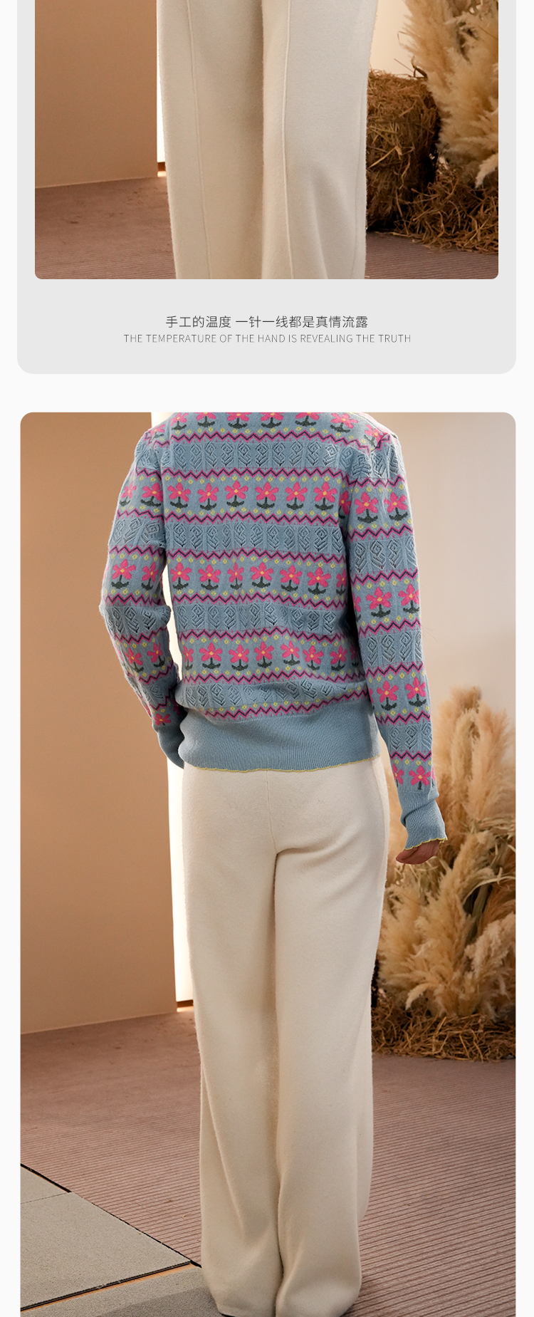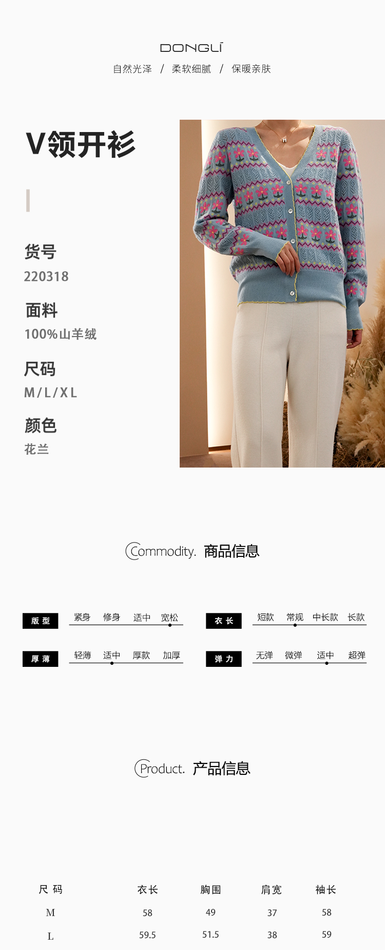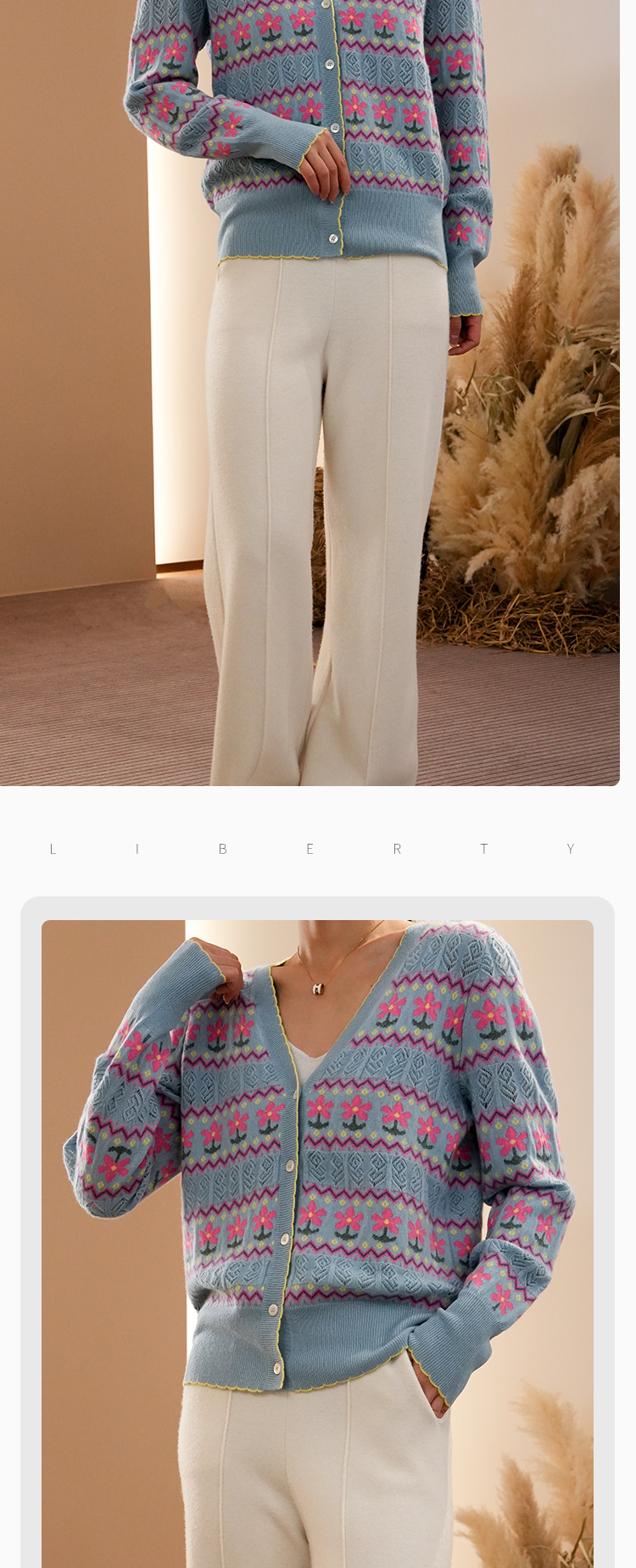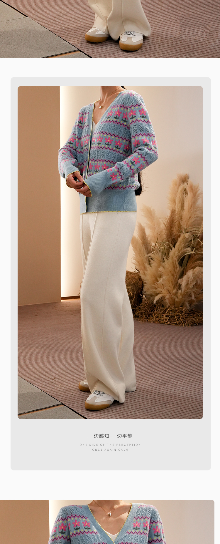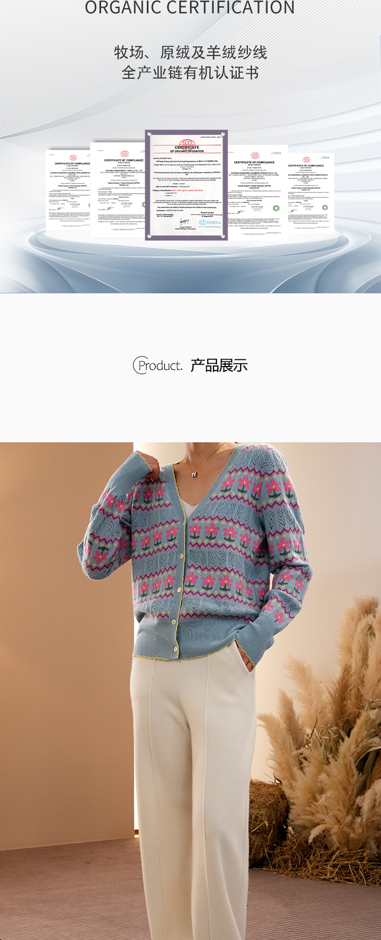DONGLI&张继成联名款 山羊绒 女士秋冬针织V领开衫复古宽松提花220318