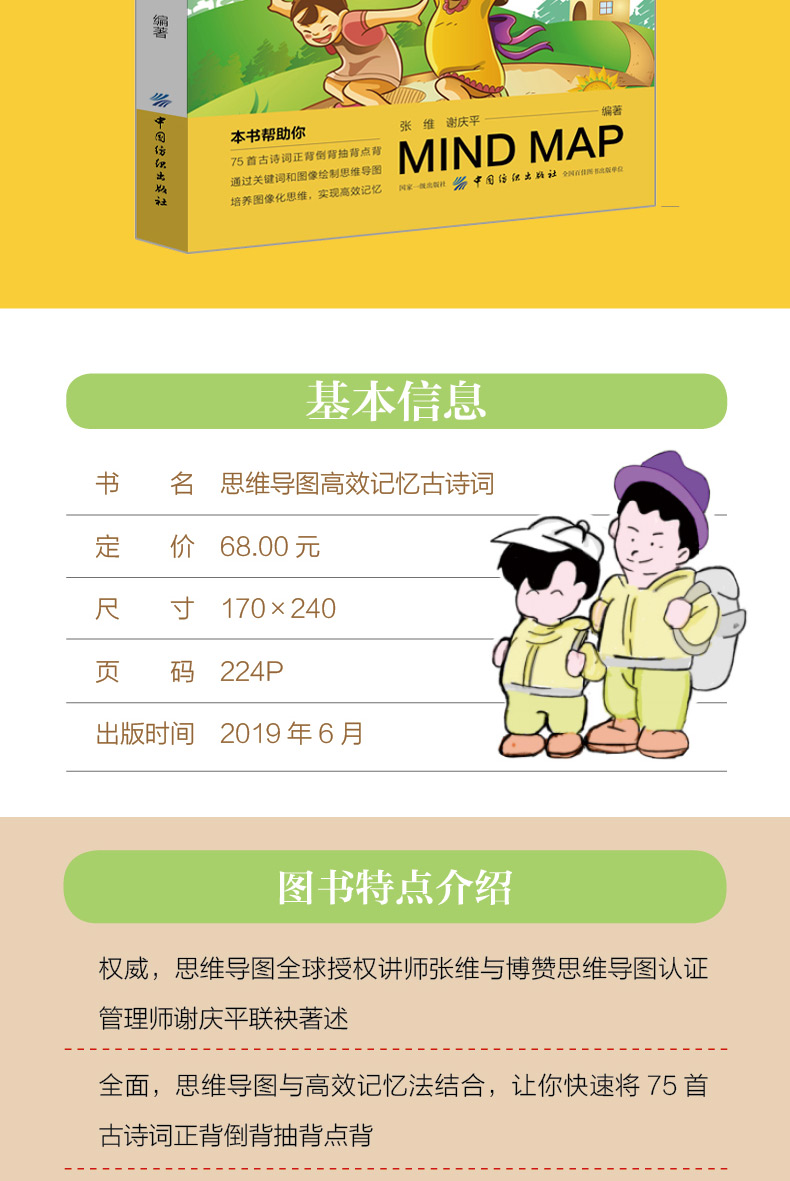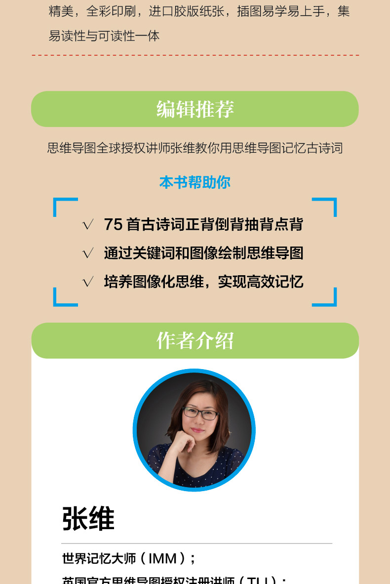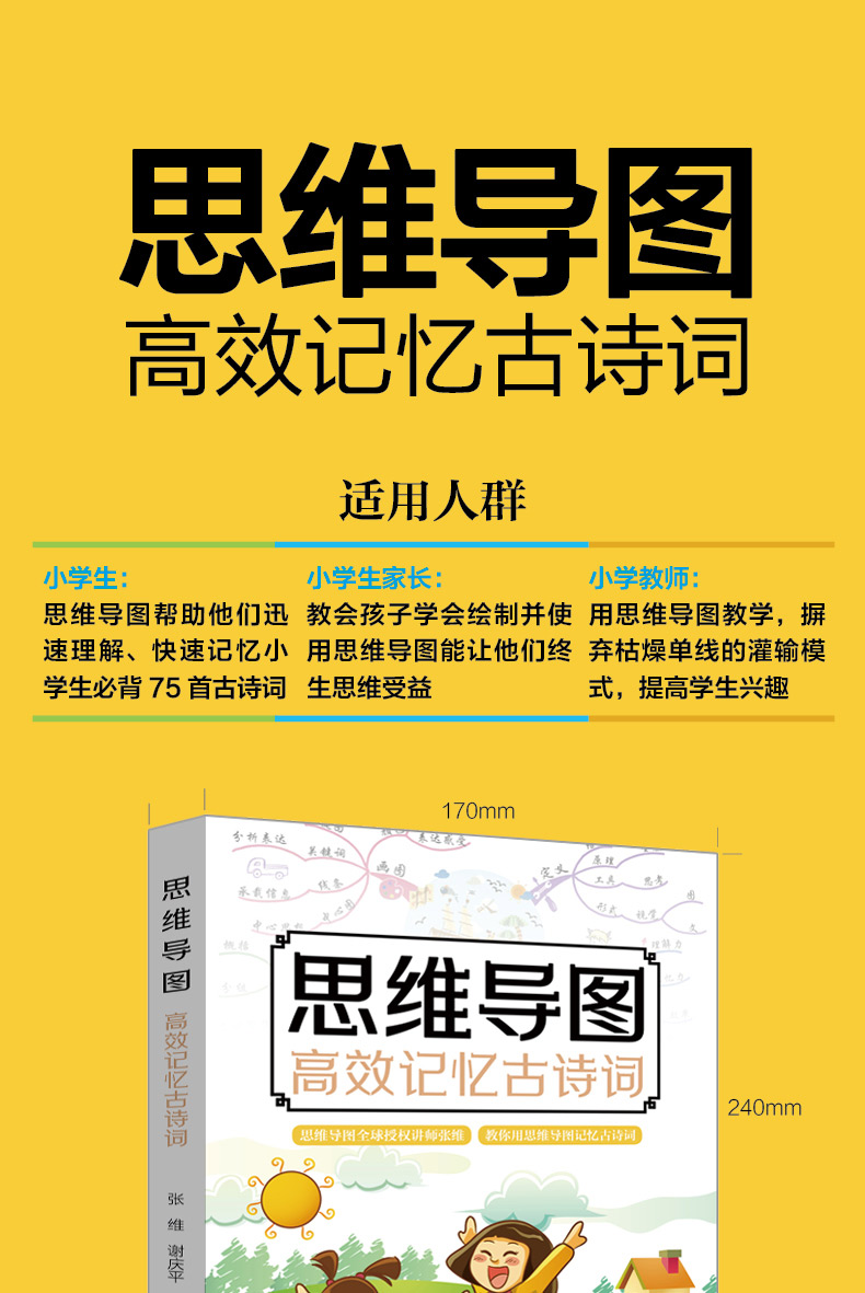 正版书籍 思维导图高效记忆古诗词 张维 谢庆平 75首古诗词正背倒背抽背培养图像化思维记得快记得牢高效记忆提升记忆力青少年读者