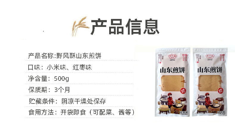野风酥500克山东大煎饼*2袋(小米红枣)