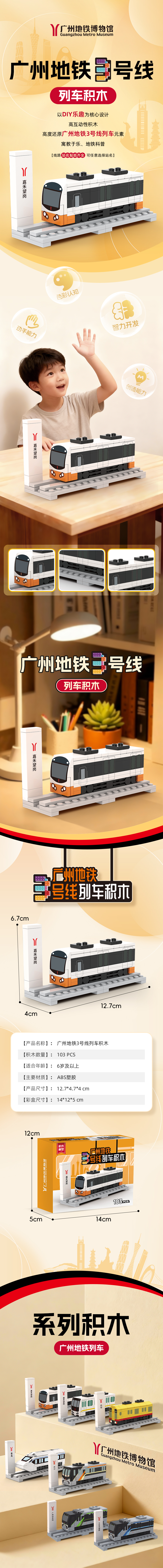 (嘉禾望岗上新啦)广州地铁列车迷你积木模型(配赠嘉禾望岗贴纸)