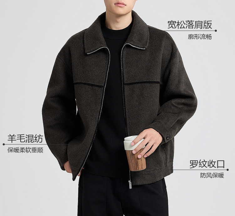 墨麦客男装美利奴羊毛翻领外套男士2025秋季新款结构感毛呢夹克男