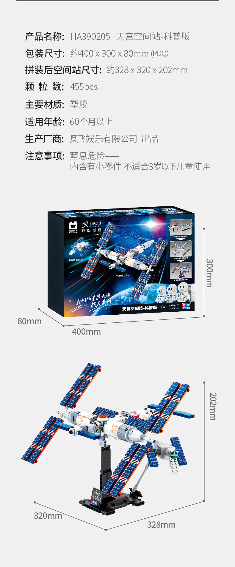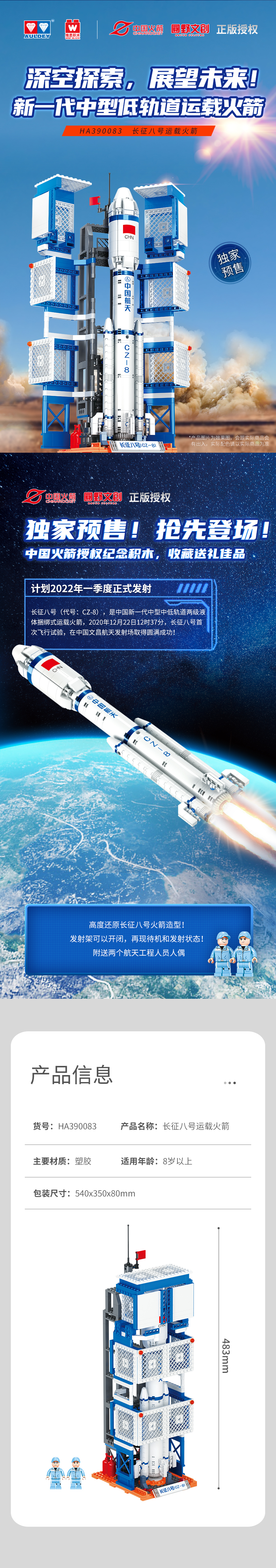 奥迪双钻(AULDEY)长征八号运载火箭积木空间站北斗卫星