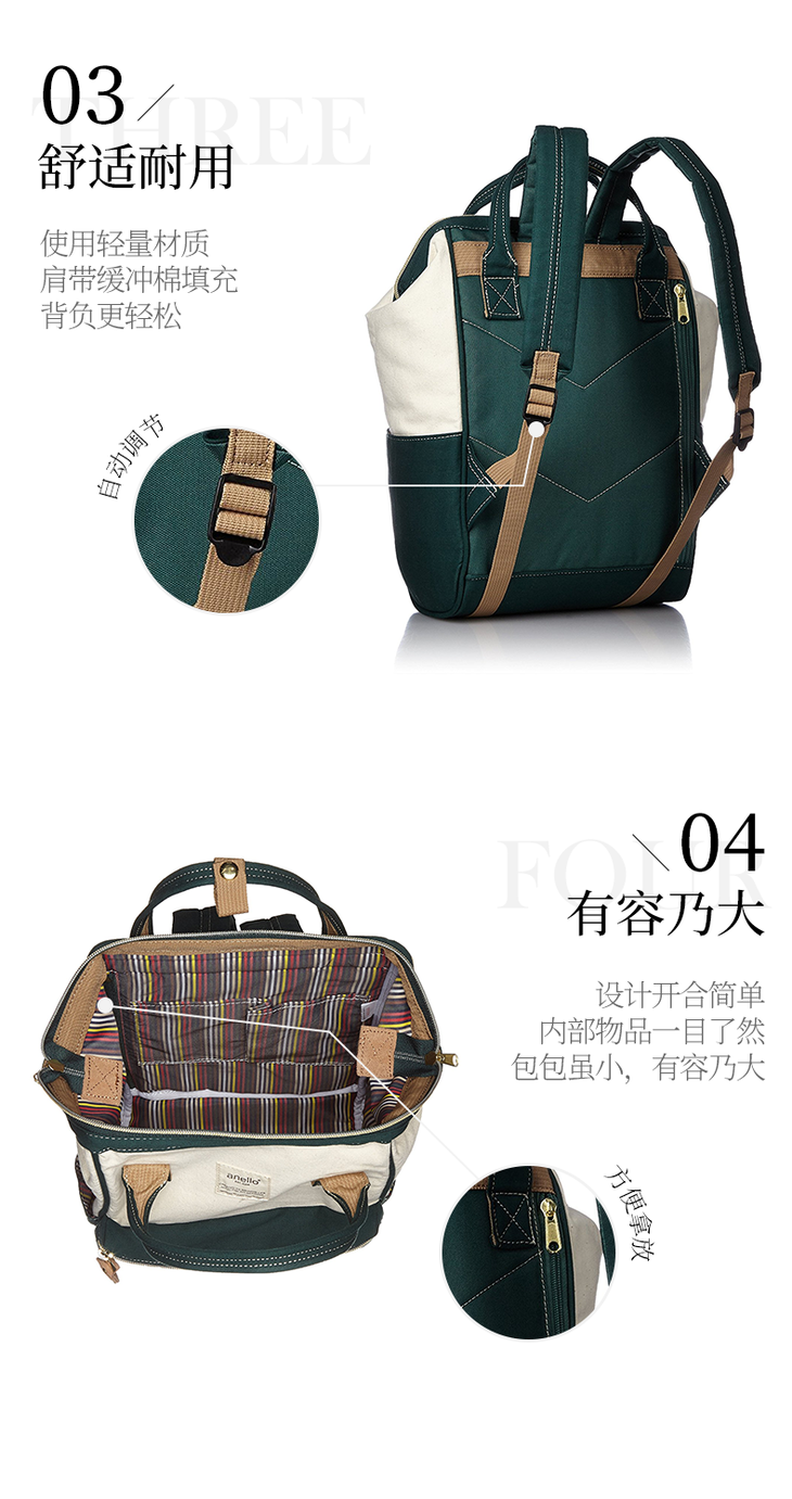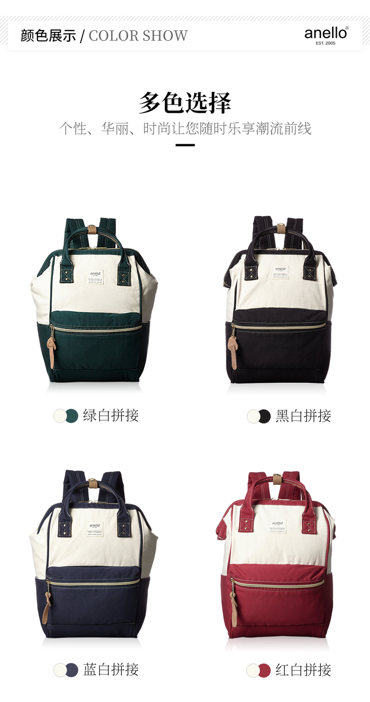 【一般贸易】anello日本离家出走妈妈包乐天防盗防水大容量书包B0935B 绿白拼接小号