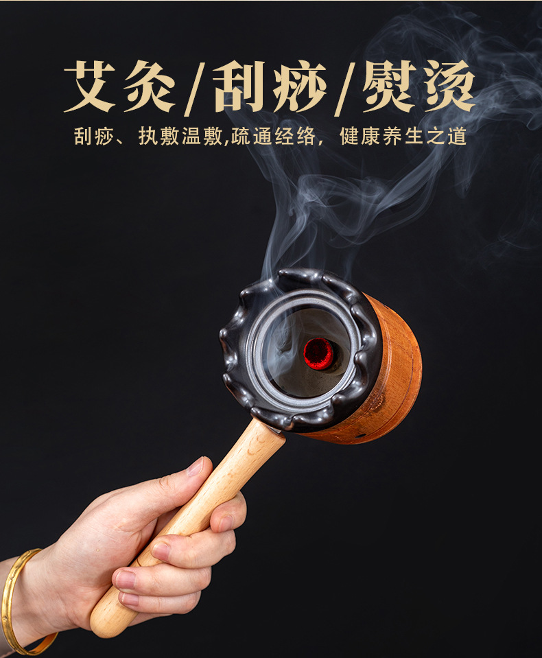 新款【实木手柄灸】手持侧把土木拔拔灸艾条工厂直销家用实木悬灸架家用防烫艾灸器具