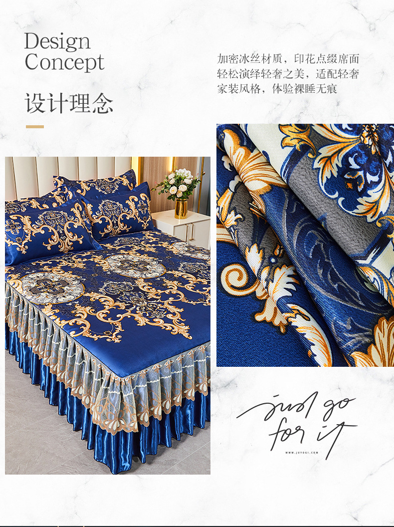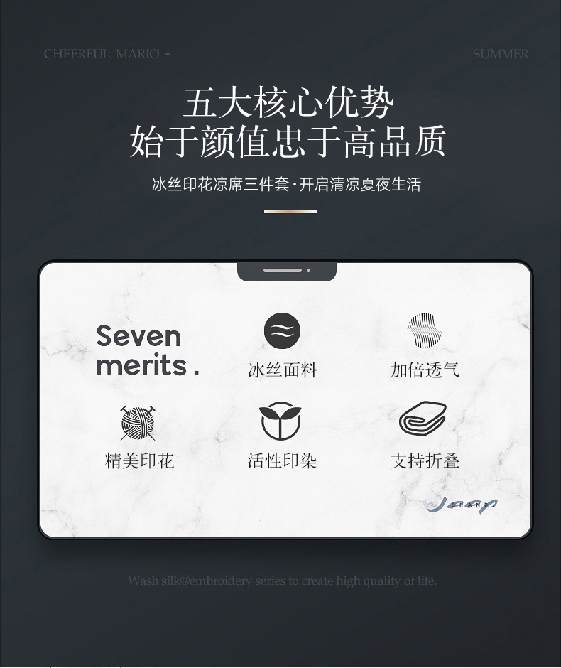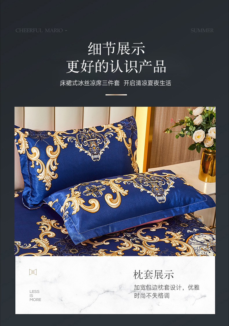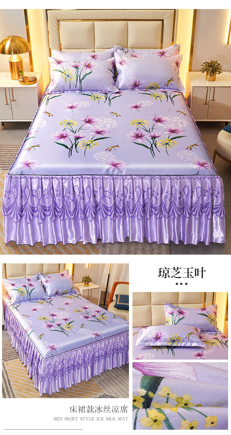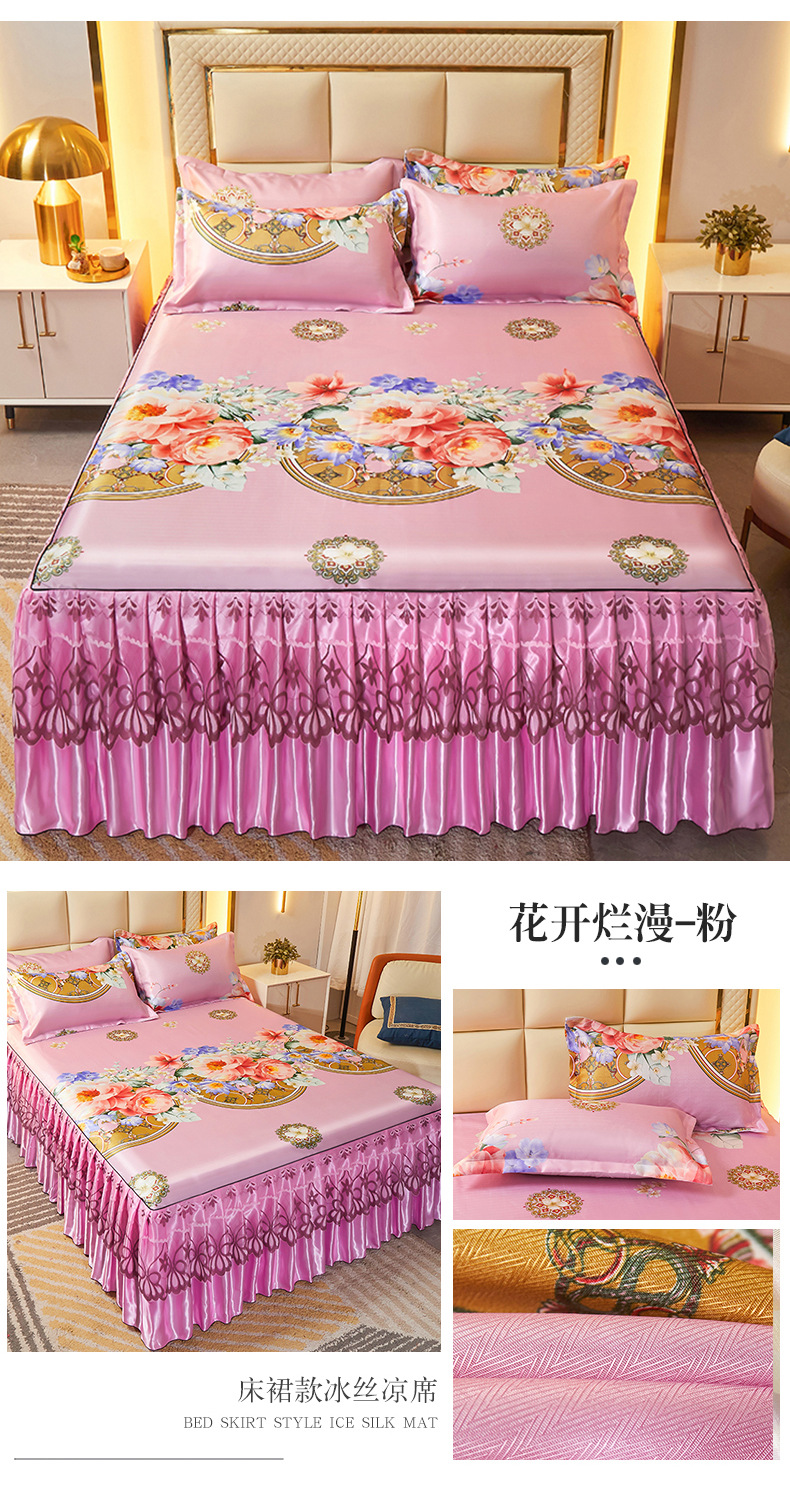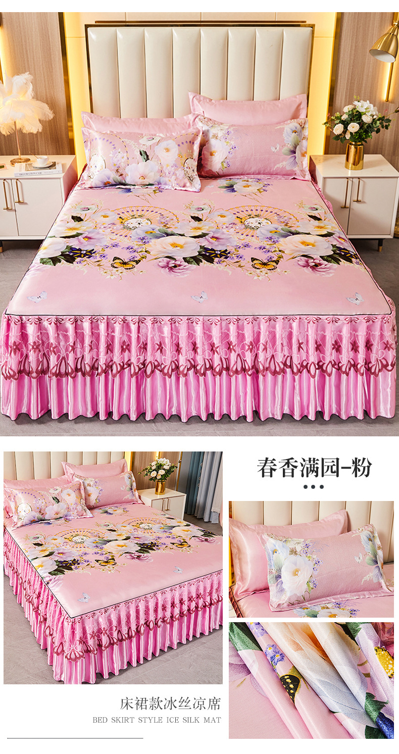 可水洗提花冰丝凉席三件套裙款夏天空调软席